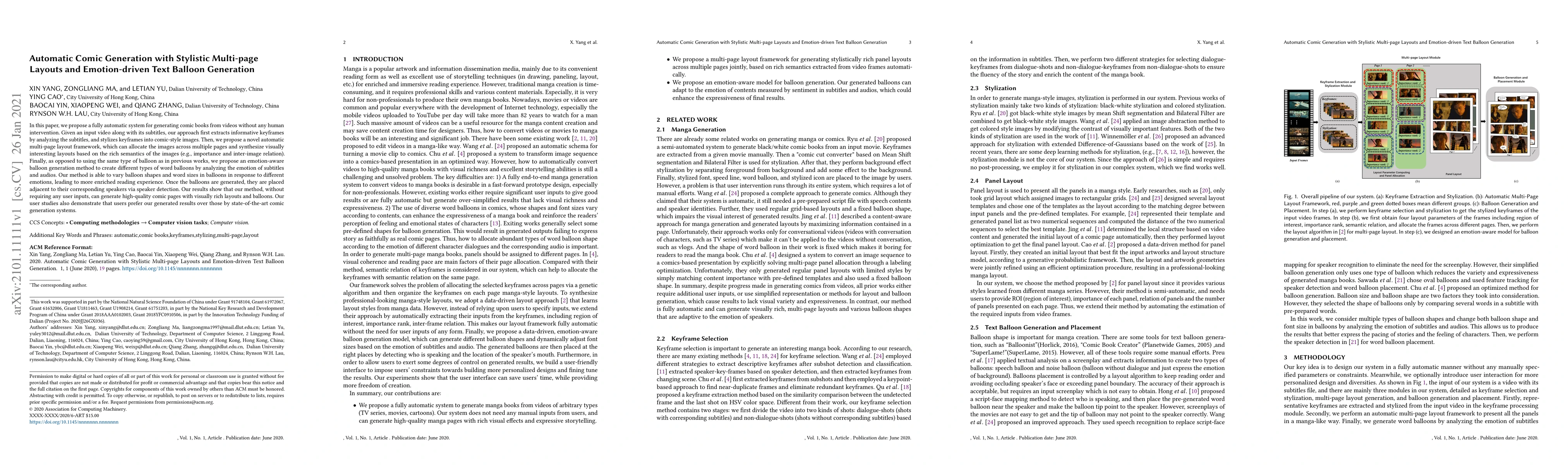 This paper proposes an automatic system for generating comic books from videos without human intervention, using a novel multi-page layout framework and emotion-aware balloon generation method.