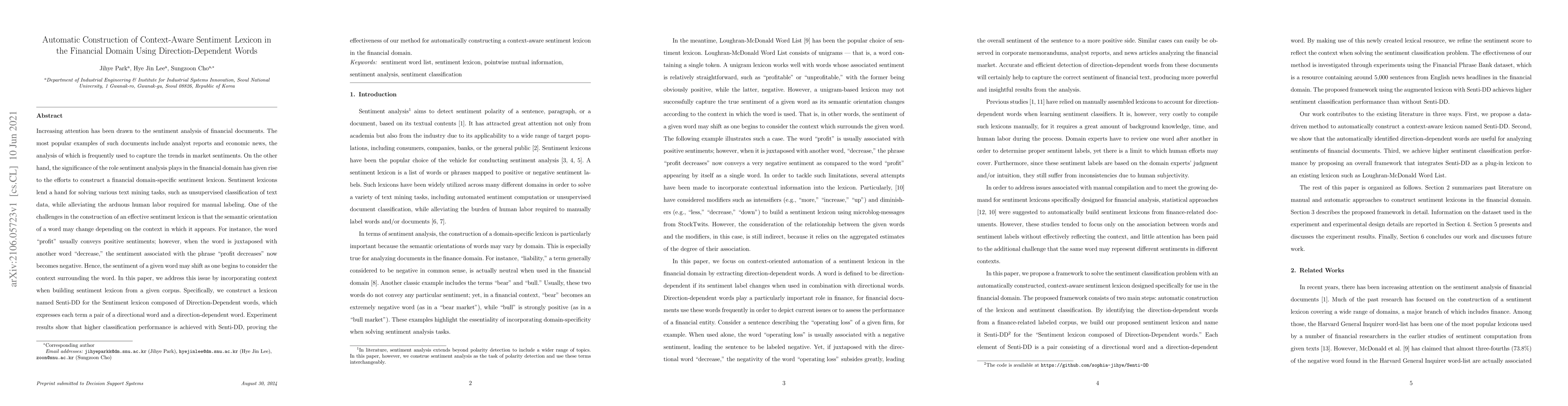This paper presents an automated method for constructing a context-aware sentiment lexicon, named Senti-DD, specifically for the financial domain. It addresses the challenge of word sentiment shifting based on context, achieving higher classification performance in sentiment analysis tasks.
