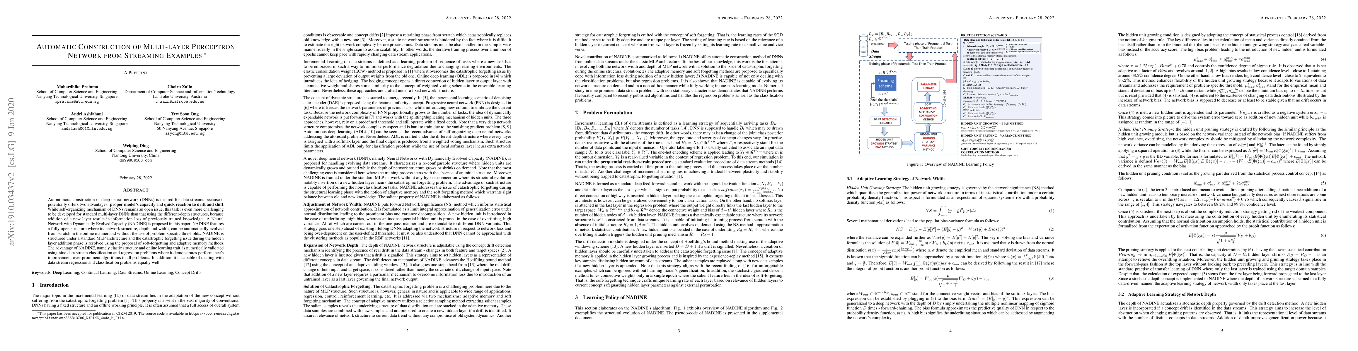 Autonomous construction of deep neural network (DNNs) is desired for data streams because it potentially offers two advantages: proper model's capacity and quick reaction to drift and shift. While the self-organizing mechanism of DNNs remains an open issue, this task is even more challenging to be developed for standard multi-layer DNNs than that using the different-depth structures, because the addition of a new layer results in information loss of previously trained knowledge. A Neural Network with Dynamically Evolved Capacity (NADINE) is proposed in this paper. NADINE features a fully open structure where its network structure, depth and width, can be automatically evolved from scratch in an online manner and without the use of problem-specific thresholds. NADINE is structured under a standard MLP architecture and the catastrophic forgetting issue during the hidden layer addition phase is resolved using the proposal of soft-forgetting and adaptive memory methods. The advantage of NADINE, namely elastic structure and online learning trait, is numerically validated using nine data stream classification and regression problems where it demonstrates performance improvement over prominent algorithms in all problems. In addition, it is capable of dealing with data stream regression and classification problems equally well.