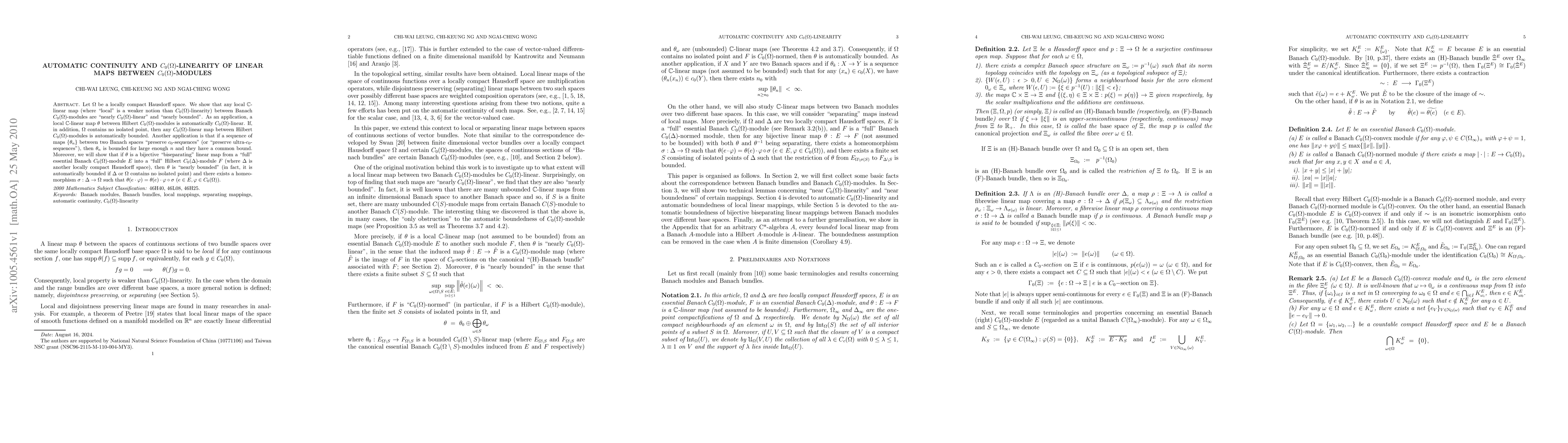 The novelty lies in demonstrating that local $\mathbb{C}$-linearity implies near $C_0(\Omega)$-linearity and near boundedness, and in proving automatic $C_0(\Omega)$-linearity for local maps between Hilbert $C_0(\Omega)$-modules under certain conditions on $\Omega$.