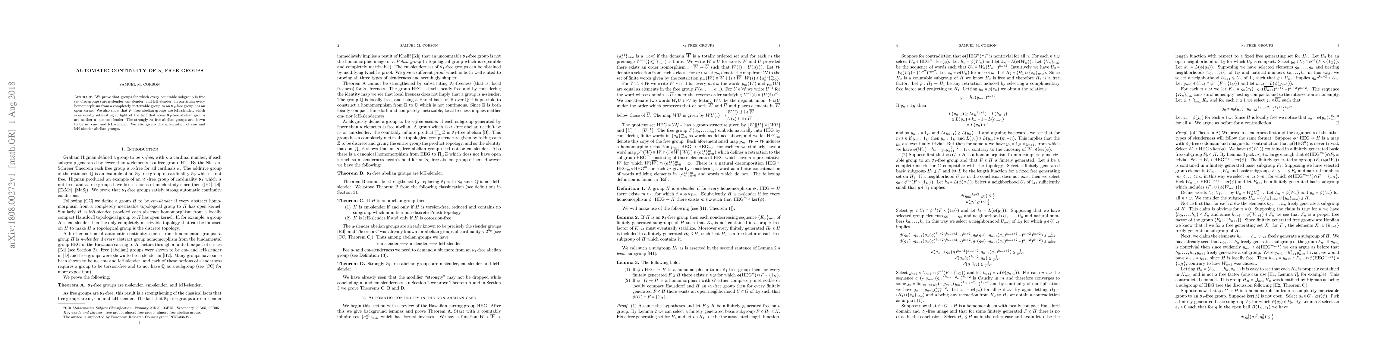 We prove that groups for which every countable subgroup is free ($\aleph_1$-free groups) are n-slender, cm-slender, and lcH-slender. In particular every homomorphism from a completely metrizable group to an $\aleph_1$-free group has an open kernel. We also show that $\aleph_1$-free abelian groups are lcH-slender, which is especially interesting in light of the fact that some $\aleph_1$-free abelian groups are neither n- nor cm-slender. The strongly $\aleph_1$-free abelian groups are shown to be n-, cm-, and lcH-slender. We also give a characterization of cm- and lcH-slender abelian groups.