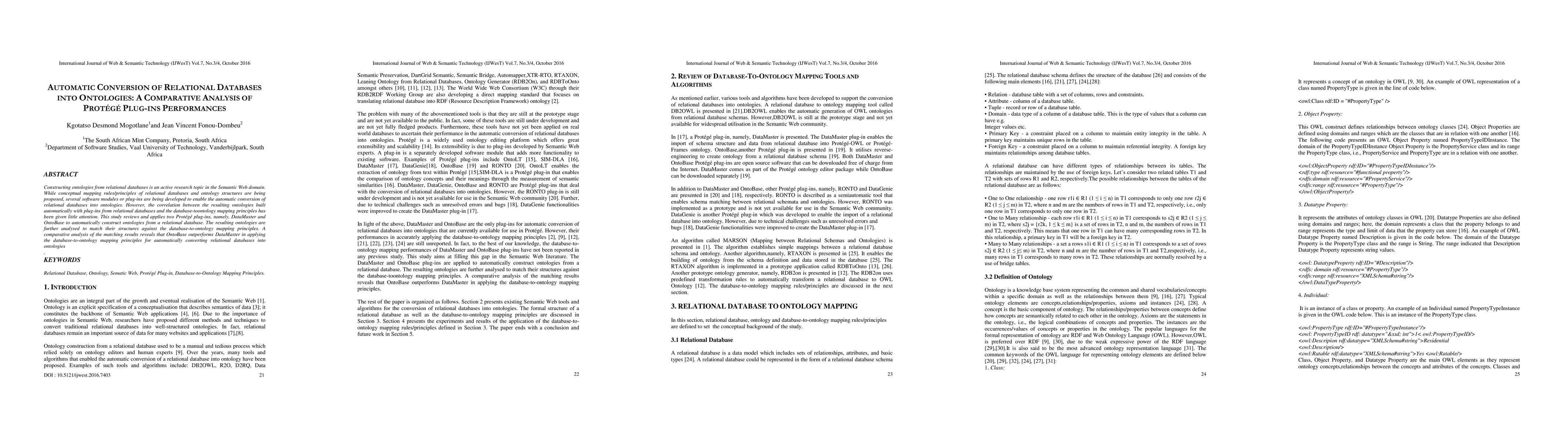 This study evaluates two Protégé plug-ins, DataMaster and OntoBase, for converting relational databases to ontologies, comparing their adherence to database-to-ontology mapping principles. OntoBase is found to better align with these principles than DataMaster.