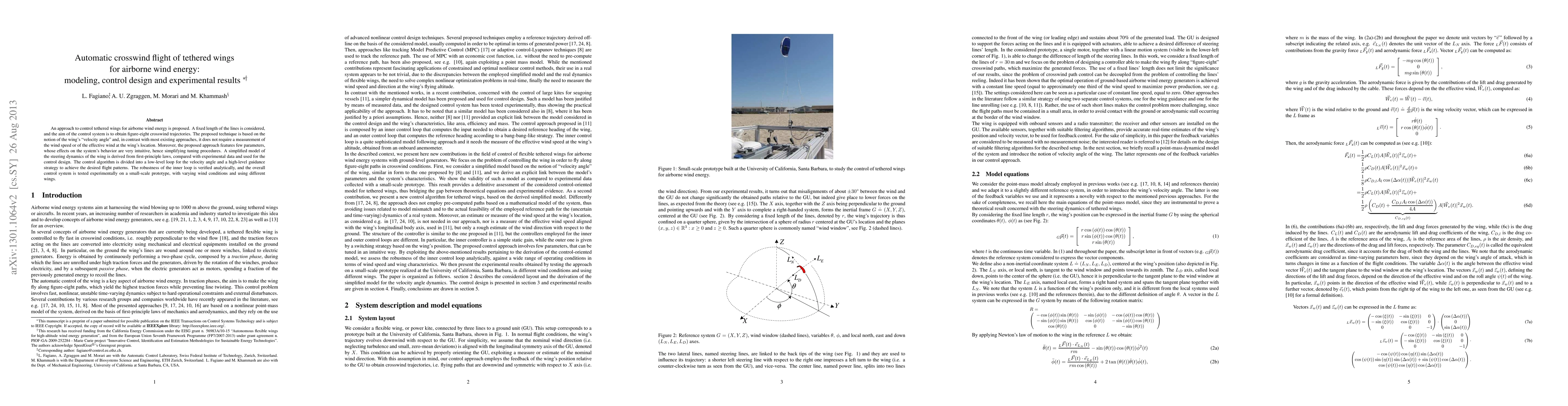 This paper proposes a control system for tethered wings to generate airborne wind energy, focusing on figure-eight crosswind flight patterns without requiring wind speed measurements. The control algorithm, based on the wing's "velocity angle," is validated through a combination of analytical modeling and experimental testing on a small-scale prototype.