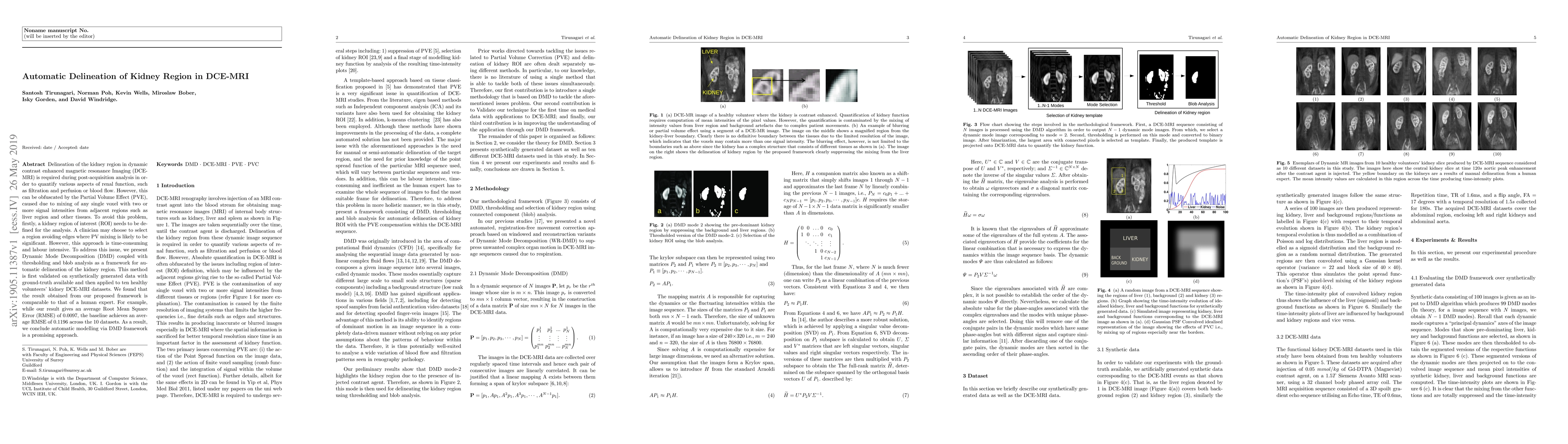 This paper proposes a Dynamic Mode Decomposition (DMD) coupled with thresholding and blob analysis for automatic delineation of kidney regions in DCE-MRI, addressing the challenges of the Partial Volume Effect. The method is validated on synthetic data and real kidney DCE-MRI from ten volunteers, showing comparable results to human experts with significantly lower RMSE.