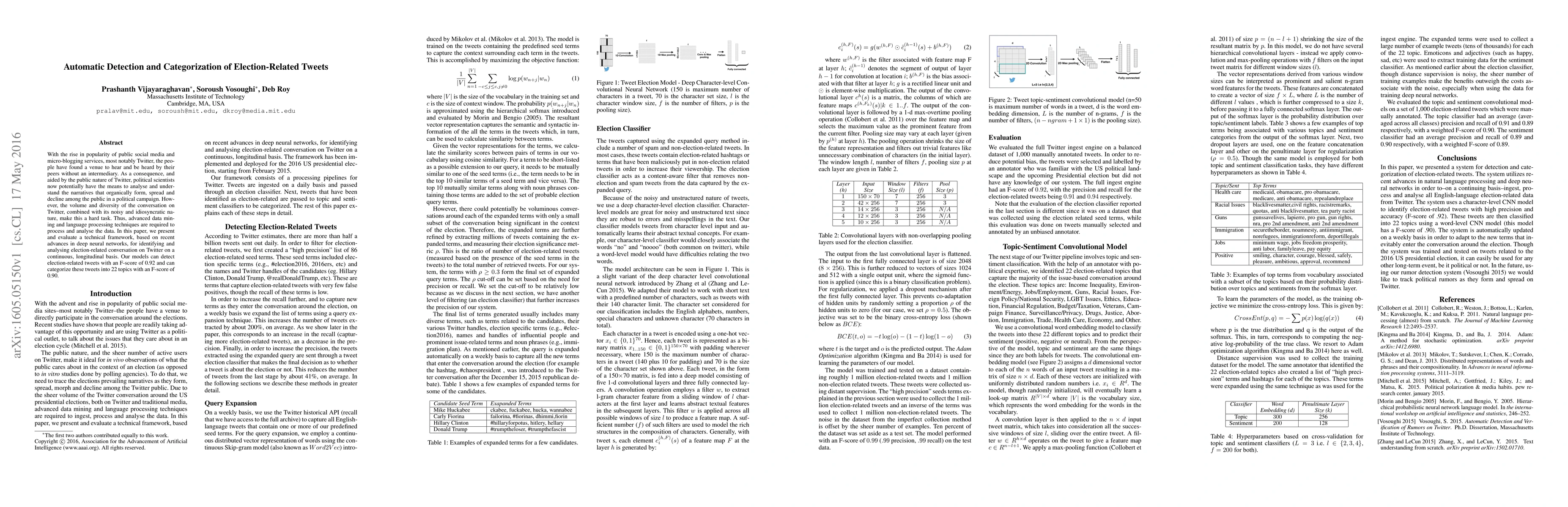 Researchers developed a framework to analyze election-related tweets on Twitter using deep neural networks, achieving an F-score of 0.92 for detection and 0.90 for categorization into 22 topics.