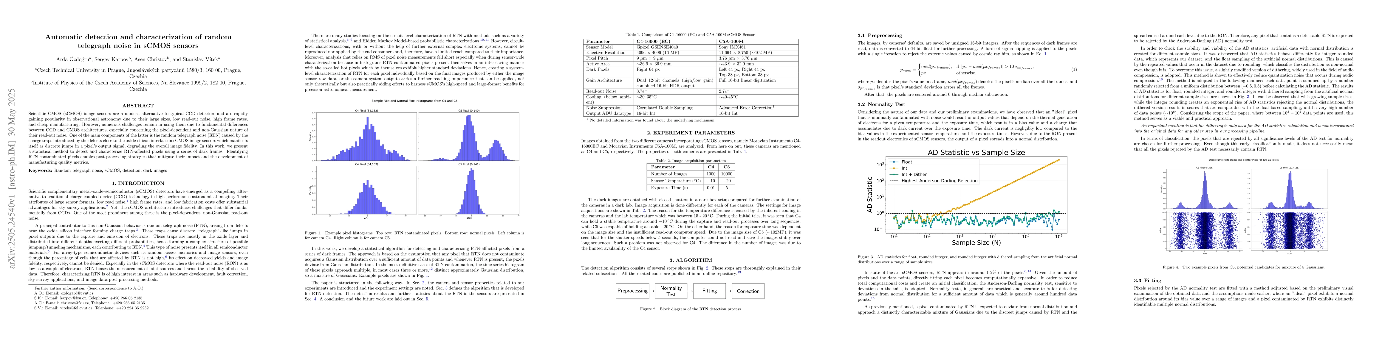 Researchers developed a method to detect and characterize random telegraph noise in sCMOS image sensors, enabling post-processing strategies to mitigate its impact on image quality. The technique uses dark frames to identify pixels affected by the noise, which is caused by charge traps introduced by defects in the sensor's architecture.