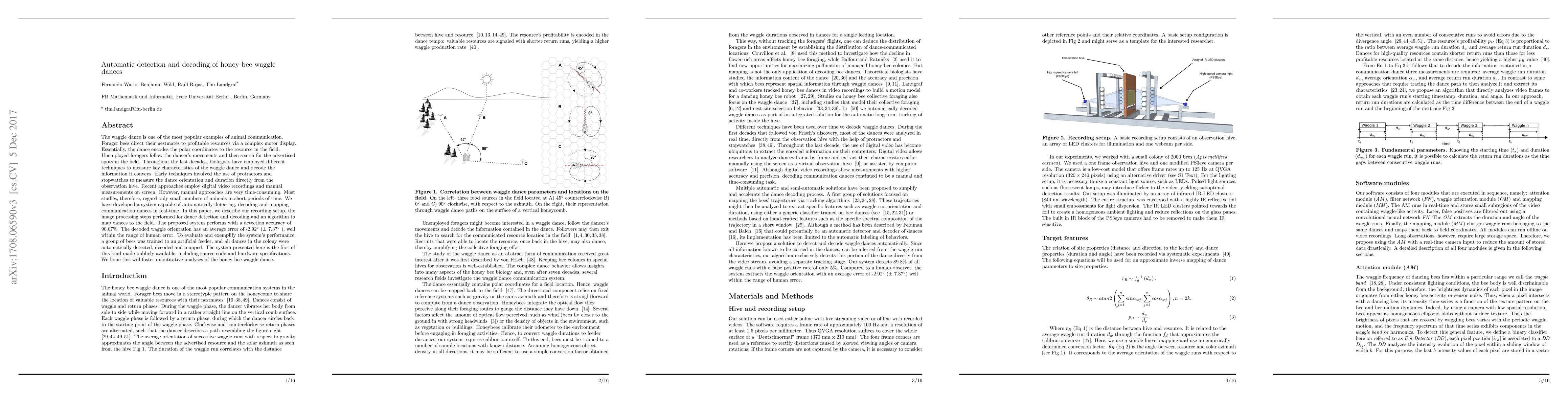 Researchers developed a system for automatic detection, decoding, and mapping of honey bee waggle dances, achieving 90.07% detection accuracy and -2.92° average error in orientation decoding. This system, publicly available with source code and hardware specs, enables comprehensive, real-time quantitative analysis of bee communication.