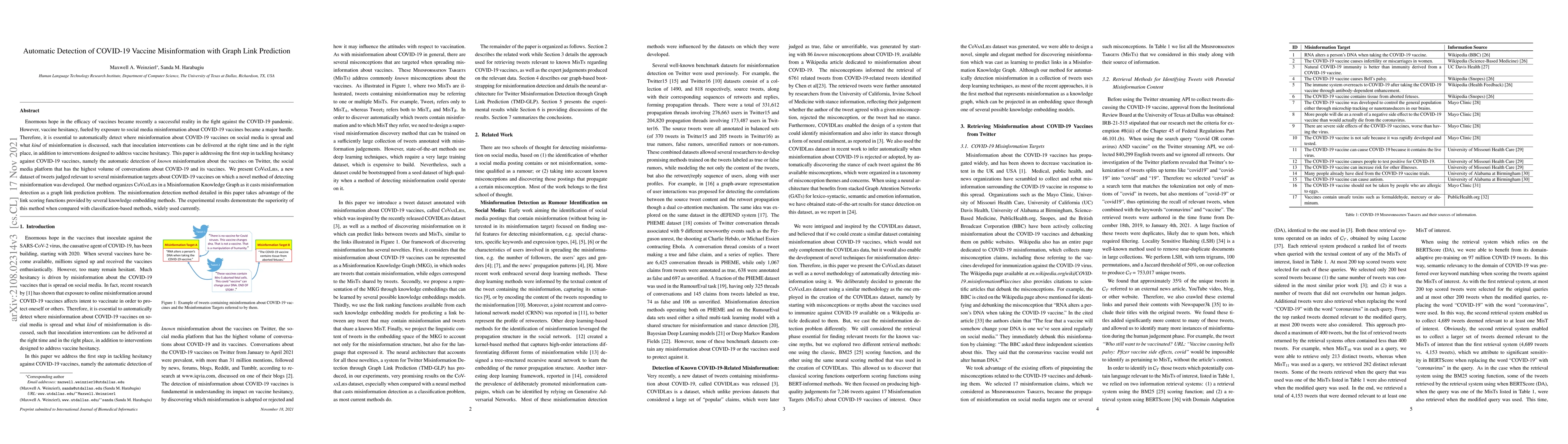 This paper introduces CoVaxLies, a dataset for detecting COVID-19 vaccine misinformation on Twitter, and presents a novel graph link prediction method for misinformation detection, outperforming traditional classification-based approaches. The method leverages knowledge embedding techniques to identify misinformation in social media conversations.