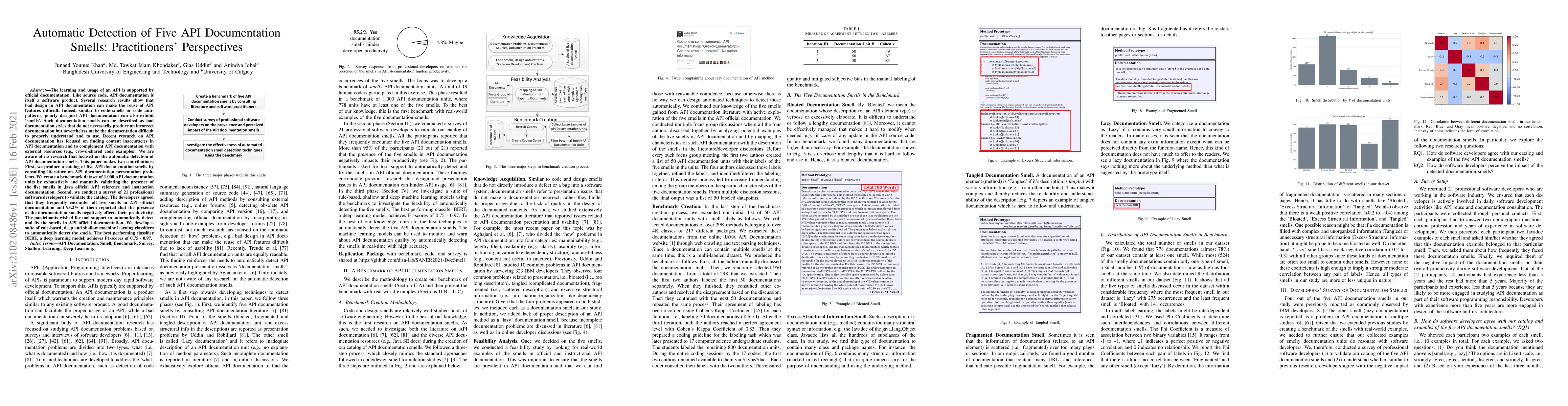 This paper catalogs five API documentation smells identified through literature review and expert validation, creating a benchmark dataset for analysis. A survey of professional developers confirms the prevalence of these smells and their negative impact on productivity, prompting the development of machine learning classifiers for automatic detection, with the best model achieving high F1-scores.