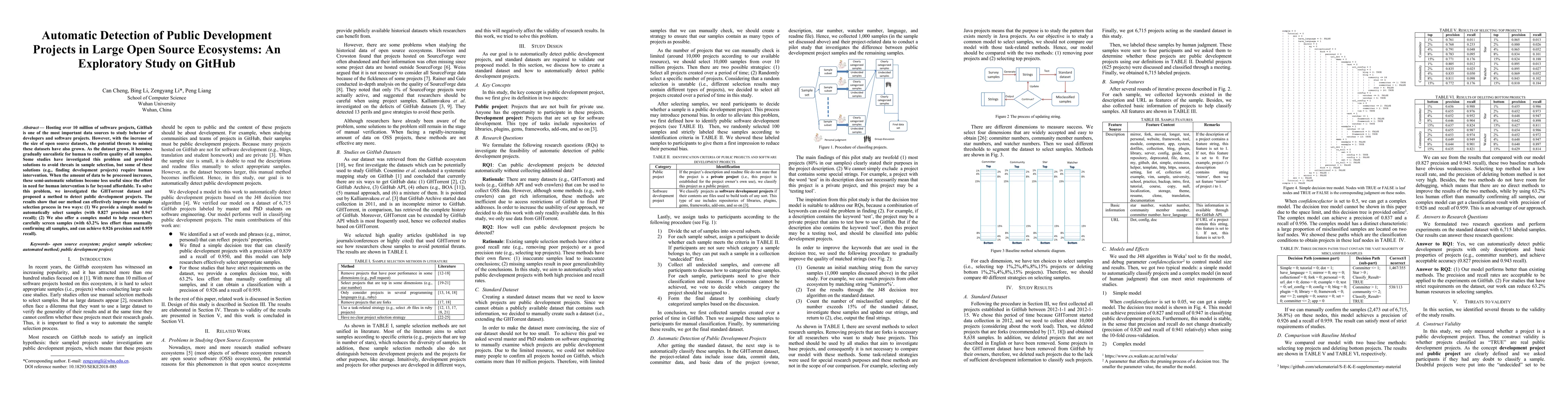 Researchers developed a method to automatically detect public development projects in large open-source datasets like GitHub, improving sample selection with high precision and recall rates.