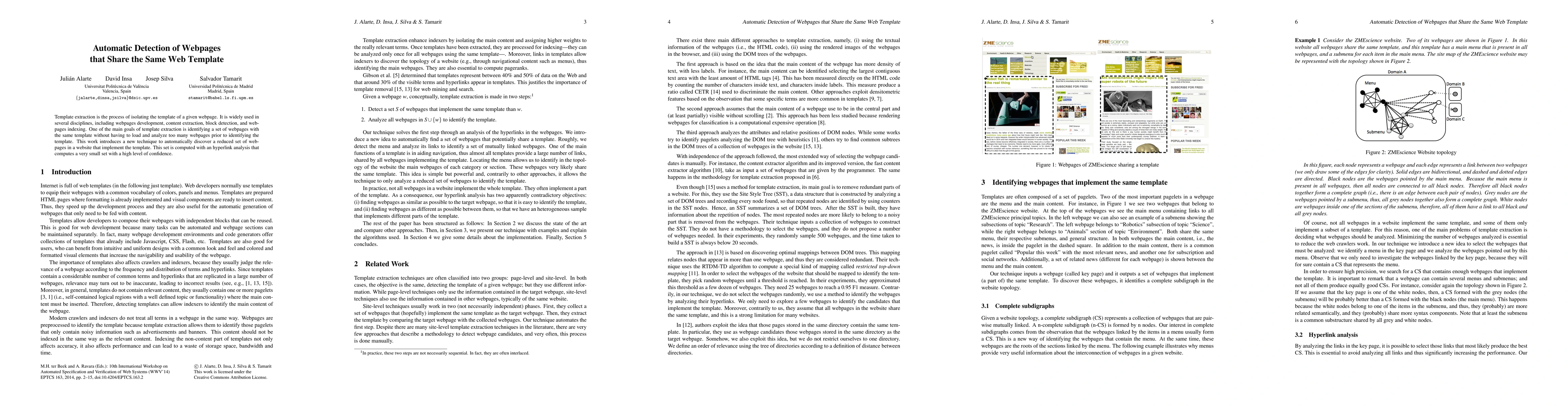 This paper presents a novel technique for automatically detecting webpages sharing the same web template through hyperlink analysis, aiming to efficiently identify a minimal set of template-implementing pages with high confidence.