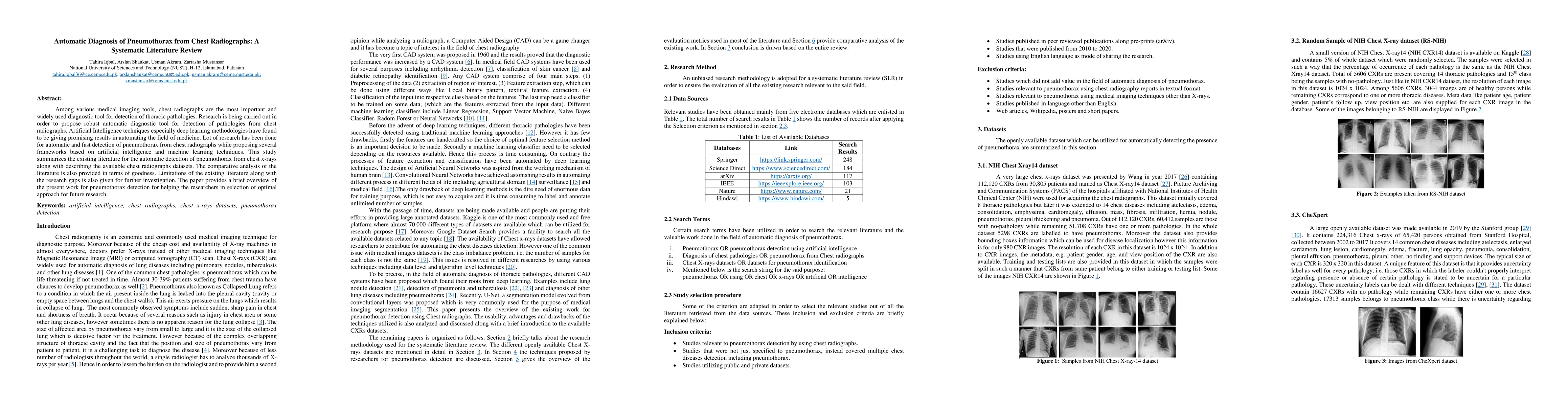 This paper systematically reviews the literature on automatic pneumothorax detection from chest radiographs, highlighting the effectiveness of AI and deep learning techniques. It also discusses existing datasets and identifies research gaps, aiming to guide future studies in this field.