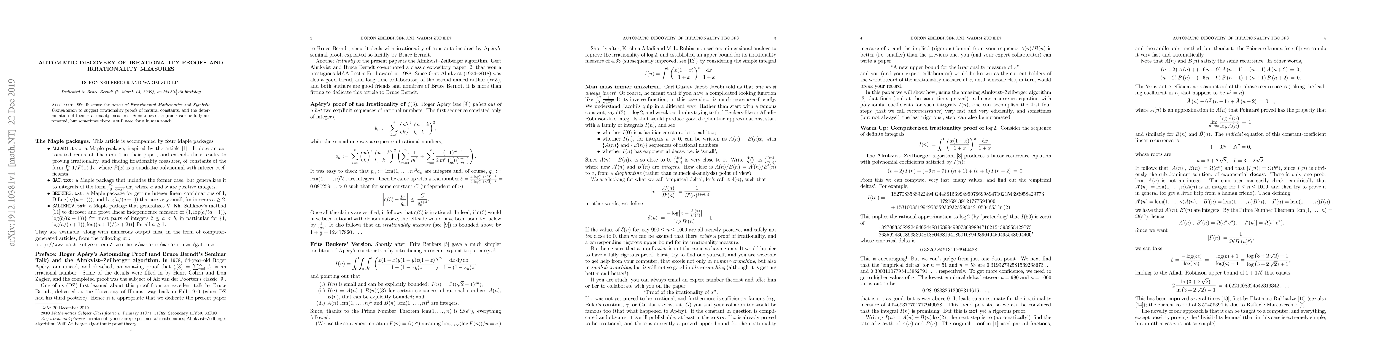 This paper demonstrates the use of Experimental Mathematics and Symbolic Computation to automate the discovery of irrationality proofs and measures for natural constants, highlighting instances where human intervention is still necessary.