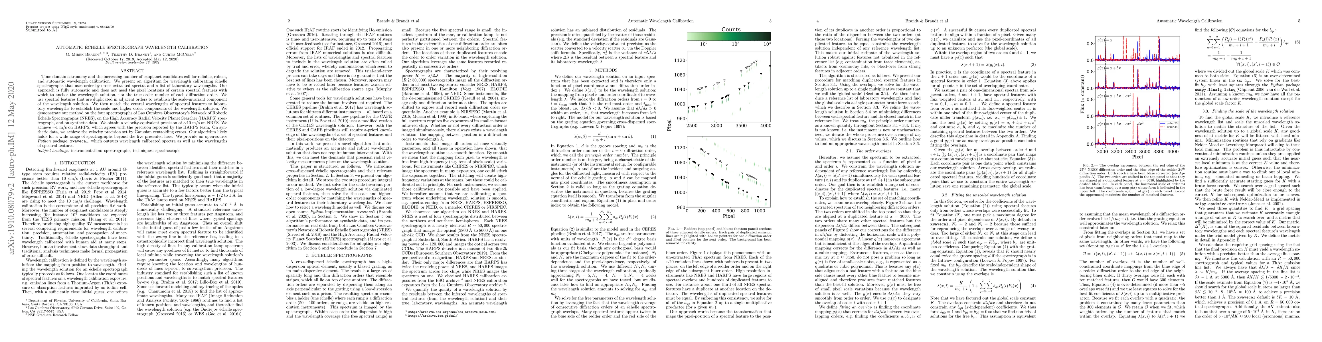 This paper presents an automatic algorithm for calibrating the wavelength of echelle spectrographs using order-by-order extracted spectra and laboratory wavelengths. The method is fully automatic, achieving velocity precisions of 10 m/s on NRES and 1 m/s on HARPS, and is demonstrated to work on multiple spectrographs.