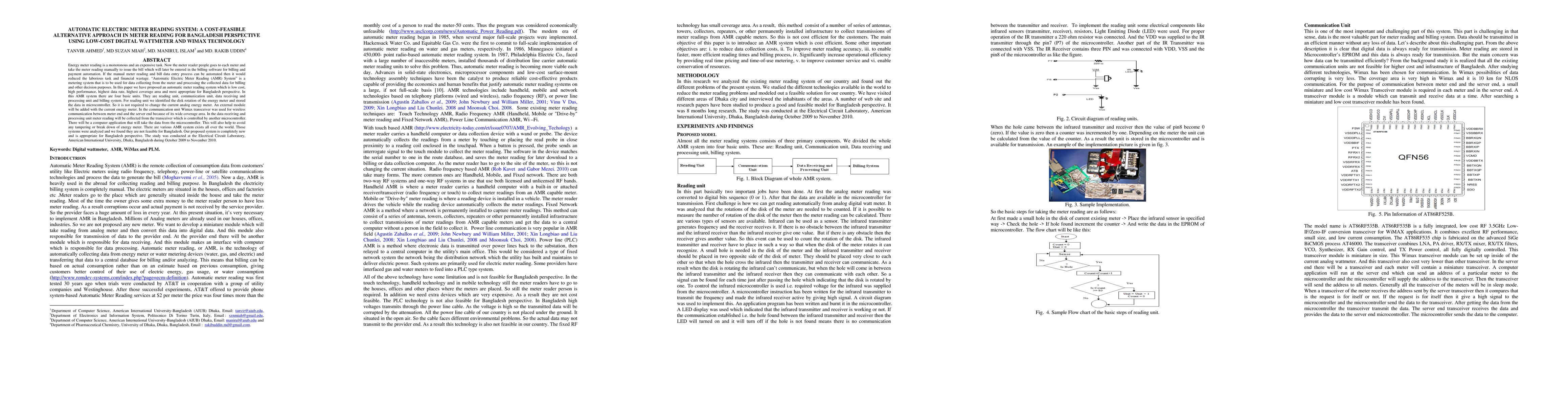 Researchers propose a low-cost Automatic Electric Meter Reading System using a disk rotation-based reading unit, Wimax technology for wireless communication, and a computer application for data processing, aiming to reduce laborious tasks and financial wastage in Bangladesh's energy meter reading process.