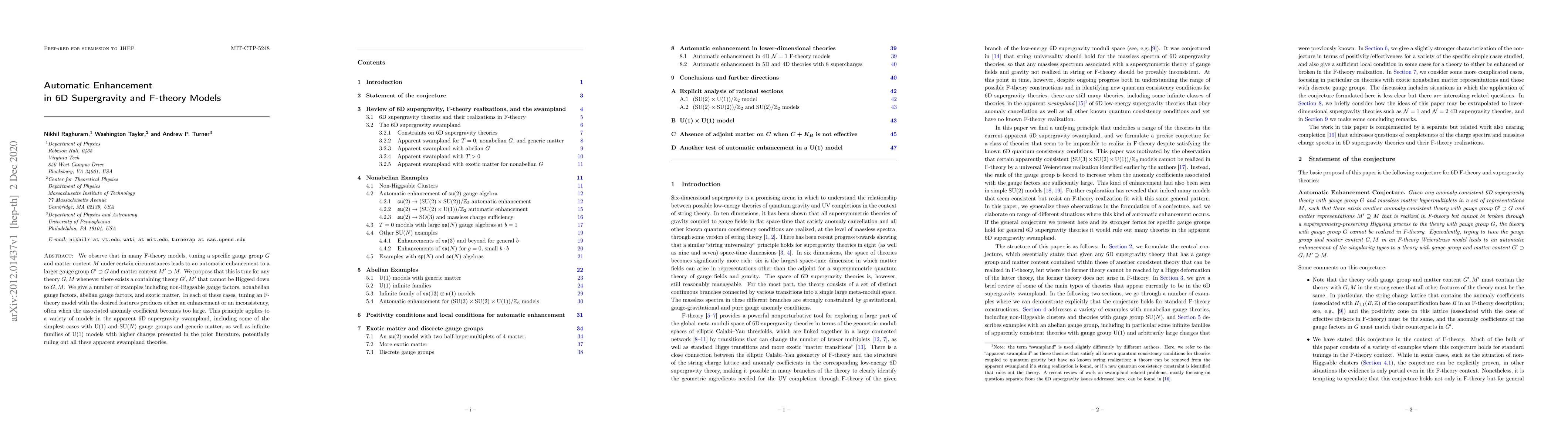 This paper explores automatic enhancement in F-theory models where tuning specific gauge groups and matter content leads to an upgrade to larger gauge groups, often revealing inconsistencies when anomaly coefficients become too large. The findings suggest that such enhancements are a general rule for any theory that cannot revert to its original form, potentially ruling out many apparent 6D supergravity swampland models.