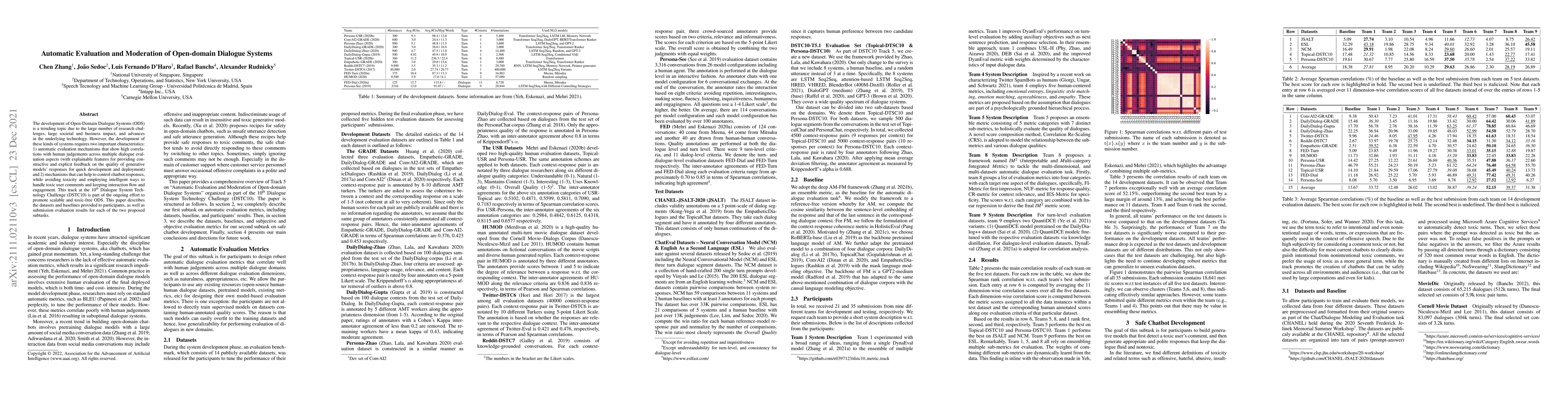 This paper explores automatic evaluation and moderation for Open-Domain Dialogue Systems, focusing on datasets and baselines for scalable, toxic-free interactions. It presents results from the 10th Dialogue System Technology Challenge (DSTC10) addressing both automatic evaluation and mechanisms for controlling chatbot responses to avoid toxicity.