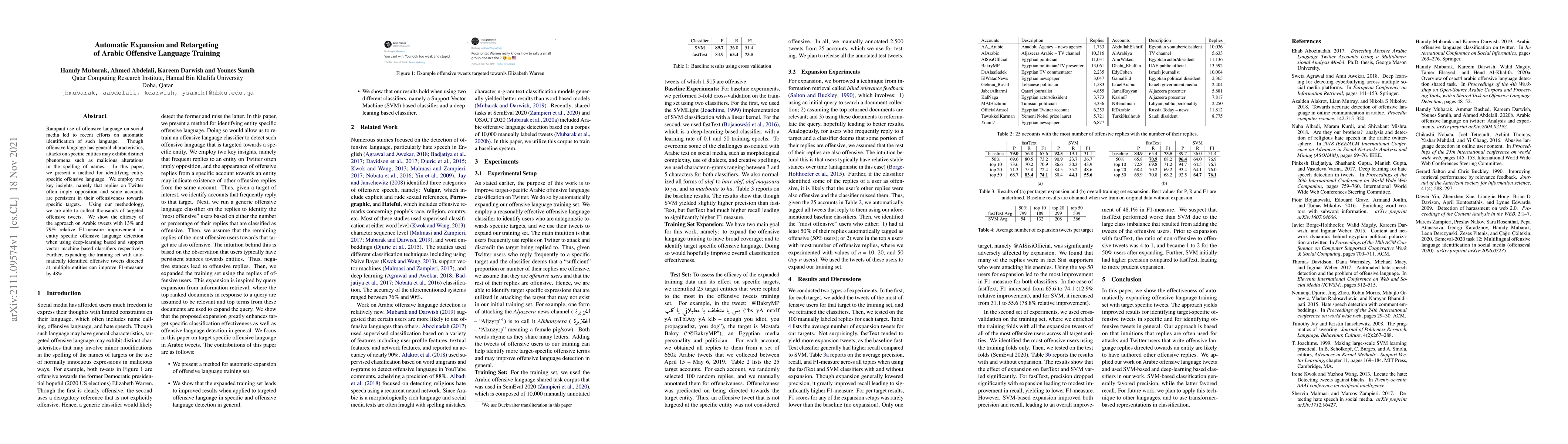Rampant use of offensive language on social media led to recent efforts on automatic identification of such language. Though offensive language has general characteristics, attacks on specific entities may exhibit distinct phenomena such as malicious alterations in the spelling of names. In this paper, we present a method for identifying entity specific offensive language. We employ two key insights, namely that replies on Twitter often imply opposition and some accounts are persistent in their offensiveness towards specific targets. Using our methodology, we are able to collect thousands of targeted offensive tweets. We show the efficacy of the approach on Arabic tweets with 13% and 79% relative F1-measure improvement in entity specific offensive language detection when using deep-learning based and support vector machine based classifiers respectively. Further, expanding the training set with automatically identified offensive tweets directed at multiple entities can improve F1-measure by 48%.