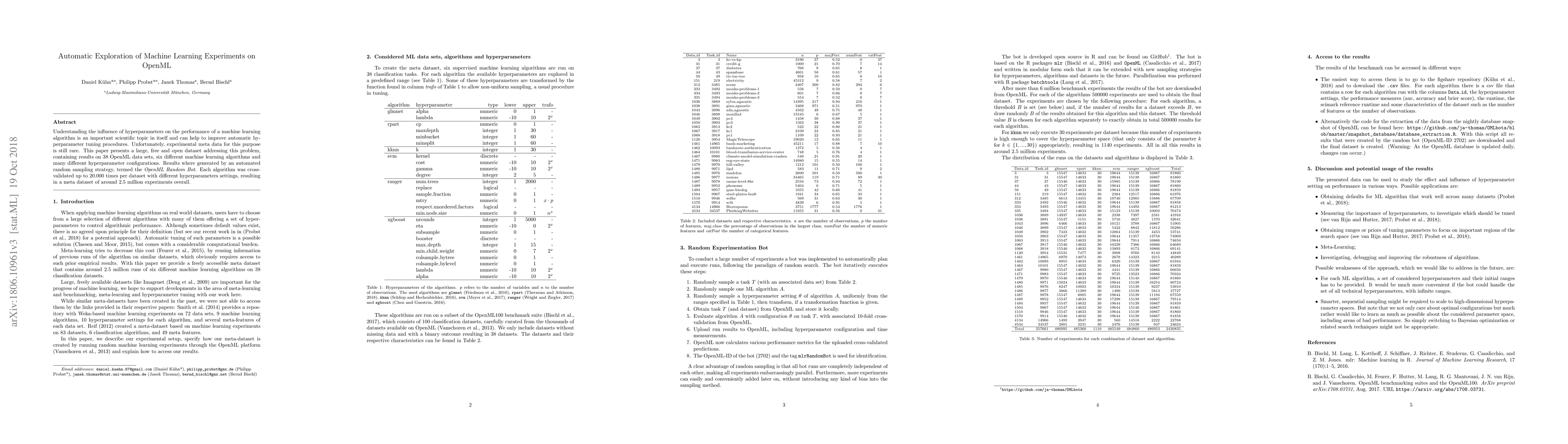 This paper introduces a comprehensive open dataset of 2.5 million machine learning experiments on 38 datasets, generated by automated random sampling to explore the impact of hyperparameters on algorithm performance. The dataset aims to enhance automatic hyperparameter tuning procedures.