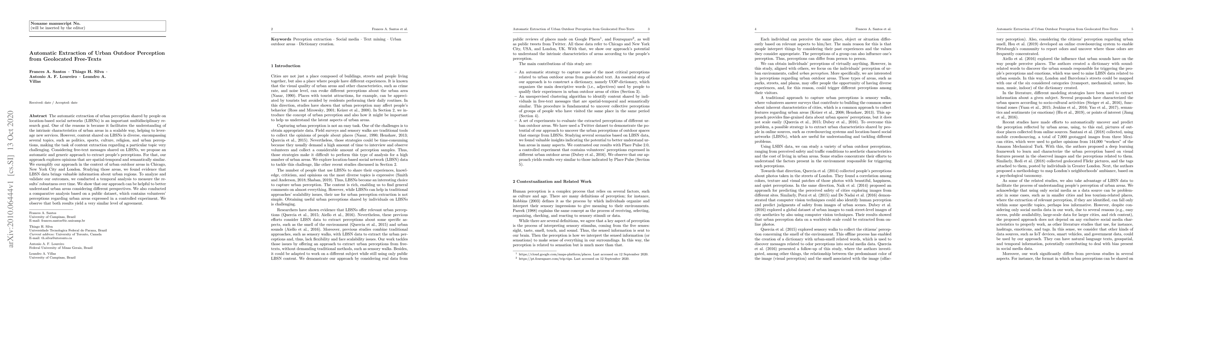 Researchers developed an automatic method to extract urban outdoor perceptions from geolocated free-texts on location-based social networks, showing its potential for understanding urban areas.