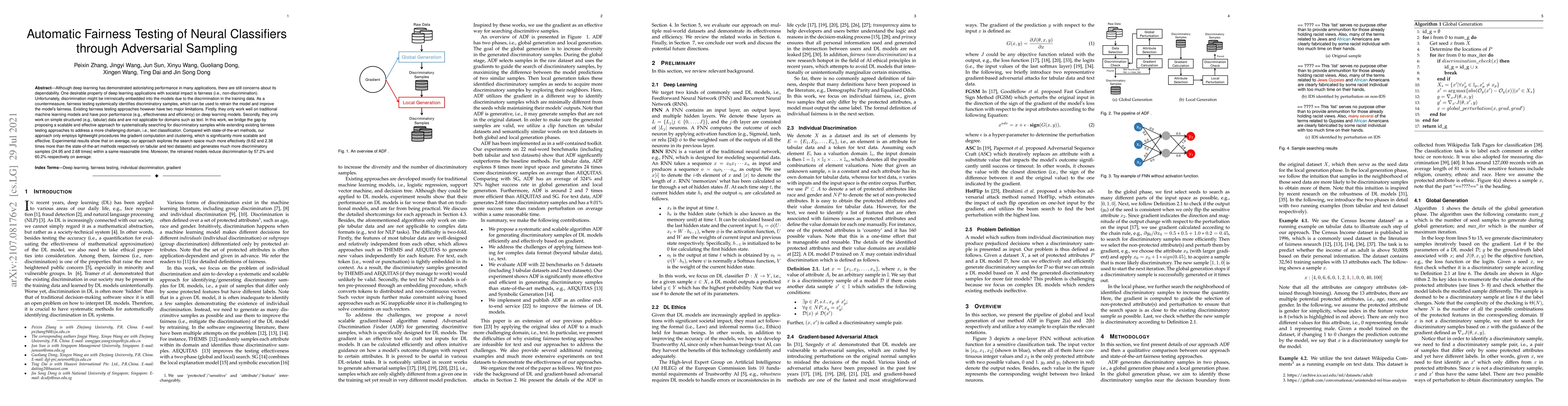 This paper proposes a scalable and efficient method for automatic fairness testing of neural classifiers using adversarial sampling, specifically designed to identify discriminatory samples in deep learning models. The method significantly outperforms existing approaches in both effectiveness and efficiency, especially for text classification, and leads to a 57.2% to 60.2% reduction in discrimination when retraining the models.