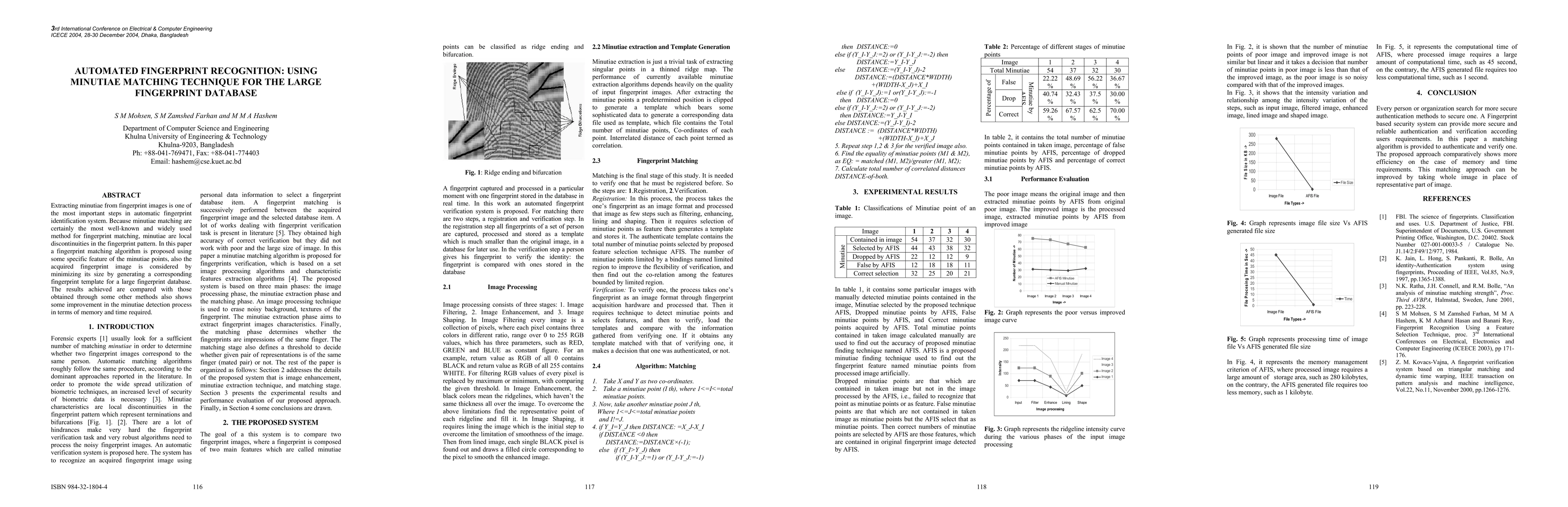 This paper proposes a minutiae matching technique for automatic fingerprint recognition in large databases, optimizing fingerprint templates to minimize size and improve detection efficiency, demonstrating improvements over other methods in terms of memory and time.