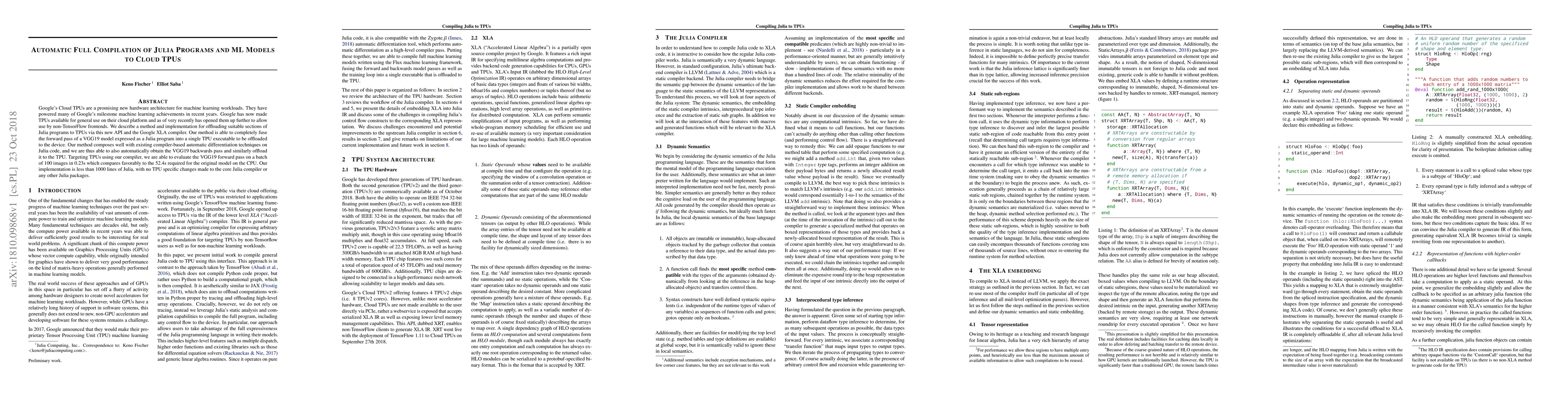 Researchers developed a method to automatically compile Julia programs and machine learning models for Google's Cloud TPUs, achieving significant speedups of up to 52 times compared to CPU execution.