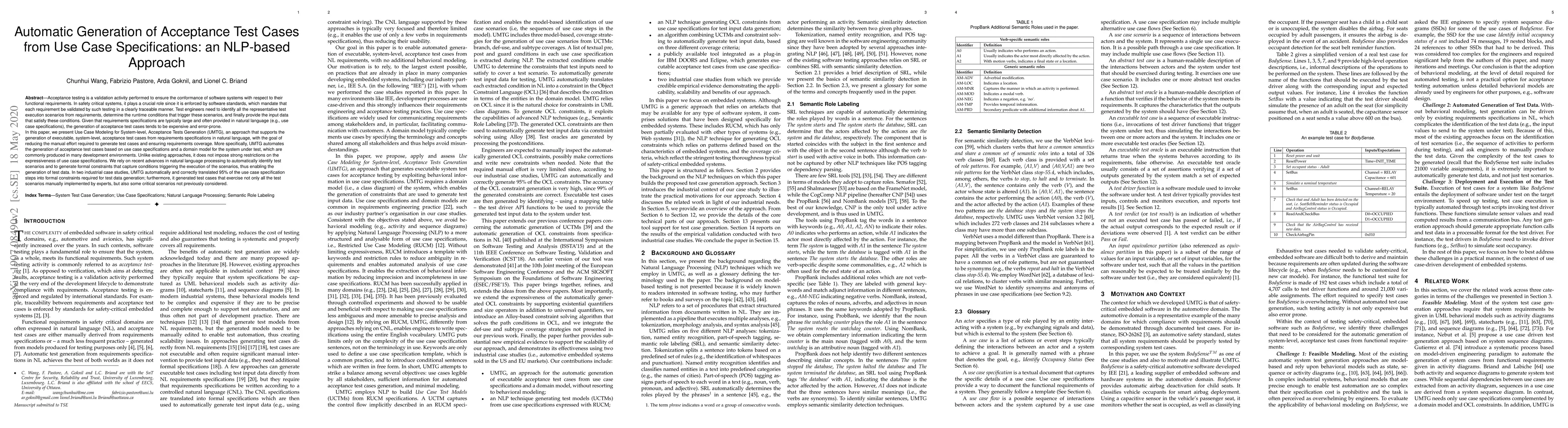 This paper introduces UMTG, an NLP-based approach for automatically generating acceptance test cases from natural language use case specifications, aiming to reduce manual effort and enhance requirements coverage. UMTG successfully translated 95% of use case steps into formal constraints in two industrial case studies, generating test cases that cover both manually implemented and previously overlooked scenarios.