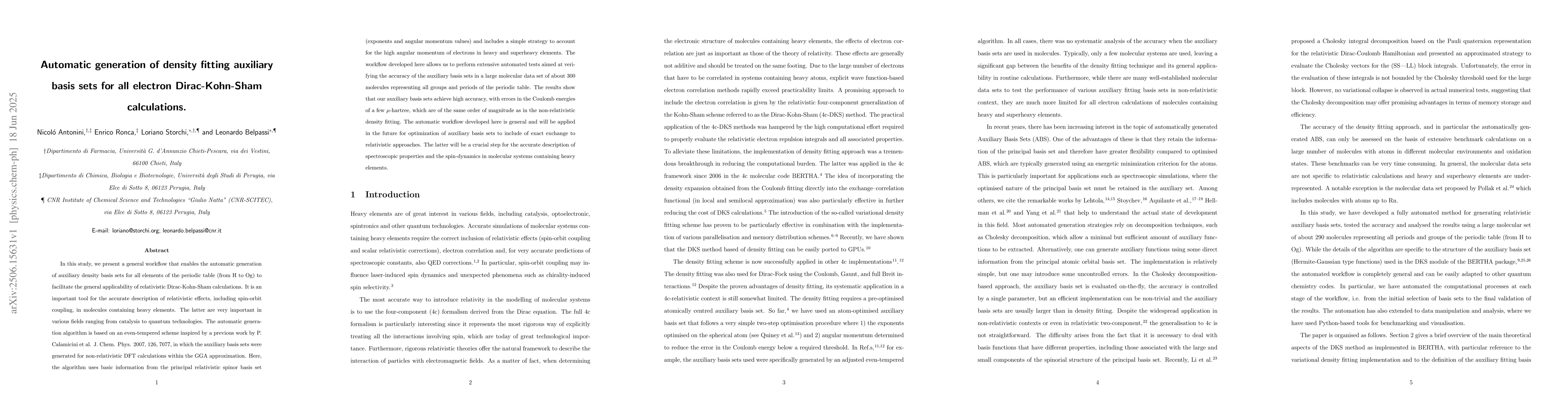 In this study, we present a general workflow that enables the automatic generation of auxiliary density basis sets for all elements of the periodic table (from H to Og) to facilitate the general applicability of relativistic Dirac-Kohn-Sham calculations. It is an important tool for the accurate description of relativistic effects, including spin-orbit coupling, in molecules containing heavy elements. The latter are very important in various fields ranging from catalysis to quantum technologies. The automatic generation algorithm is based on an even-tempered scheme inspired by a previous work by P. Calamicini et al. J. Chem. Phys. 2007, 126, 7077, in which the auxiliary basis sets were generated for non-relativistic DFT calculations within the GGA approximation. Here, the algorithm uses basic information from the principal relativistic spinor basis set (exponents and angular momentum values) and includes a simple strategy to account for the high angular momentum of electrons in heavy and superheavy elements. The workflow developed here allows us to perform extensive automated tests aimed at verifying the accuracy of the auxiliary basis sets in a large molecular data set of about 300 molecules representing all groups and periods of the periodic table. The results show that our auxiliary basis sets achieve high accuracy, with errors in the Coulomb energies of a few {\mu}-hartree, which are of the same order of magnitude as in the non-relativistic density fitting. The automatic workflow developed here is general and will be applied in the future for optimization of auxiliary basis sets to include of exact exchange to relativistic approaches. The latter will be a crucial step for the accurate description of spectroscopic properties and the spin-dynamics in molecular systems containing heavy elements.