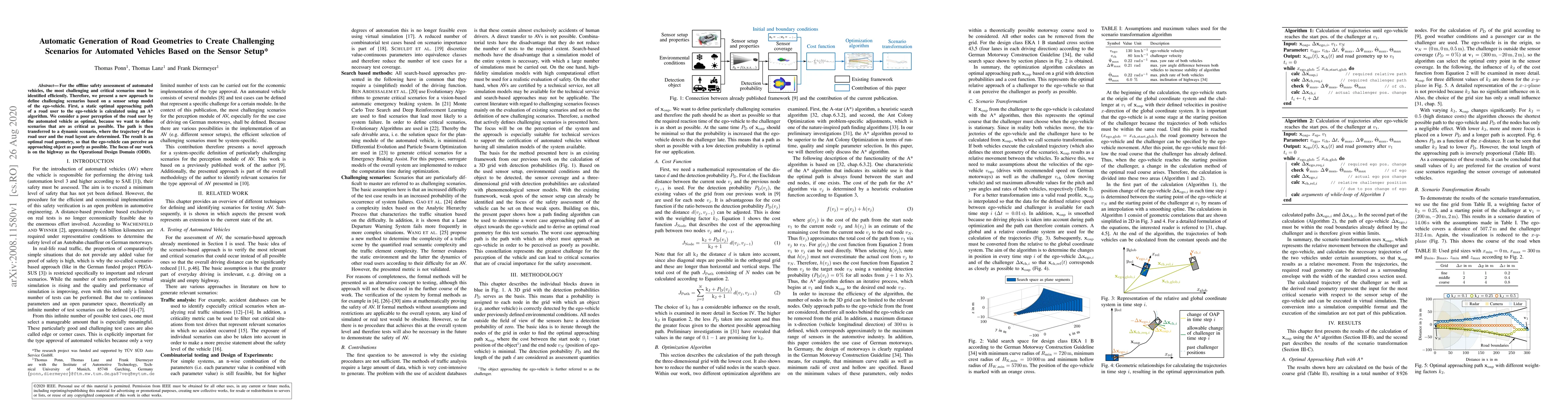 Researchers develop a method to create challenging road scenarios for automated vehicles based on sensor setups, aiming to identify critical safety assessment cases. The approach uses an A* algorithm to calculate optimal approaching paths for road users.