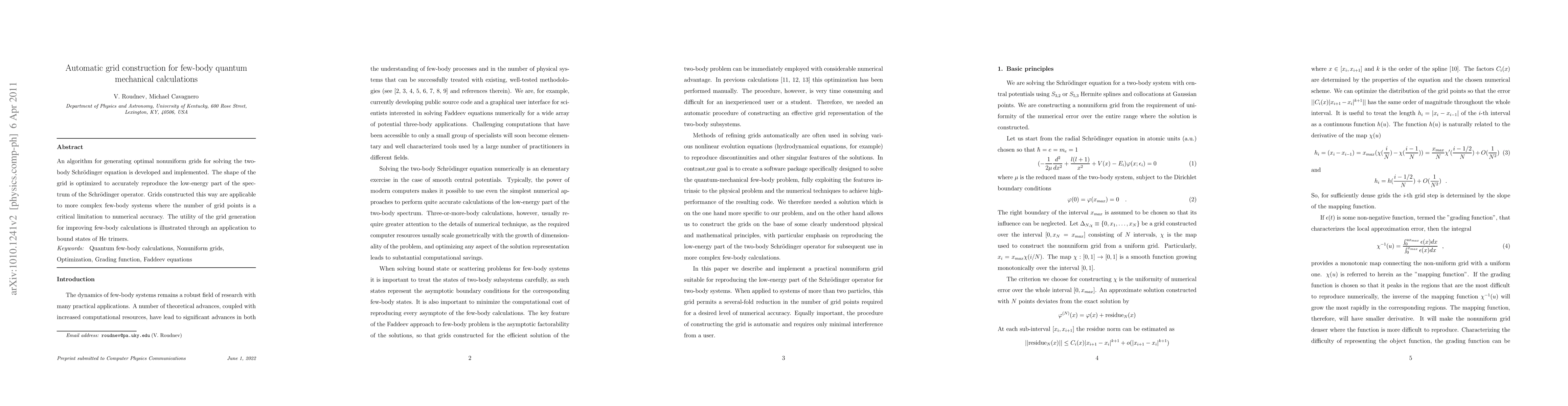 This paper presents an algorithm for creating optimal nonuniform grids to solve the two-body Schrödinger equation, focusing on accurately reproducing low-energy spectra. The method is demonstrated to enhance numerical accuracy for complex few-body systems, exemplified by bound states calculations in He trimers.