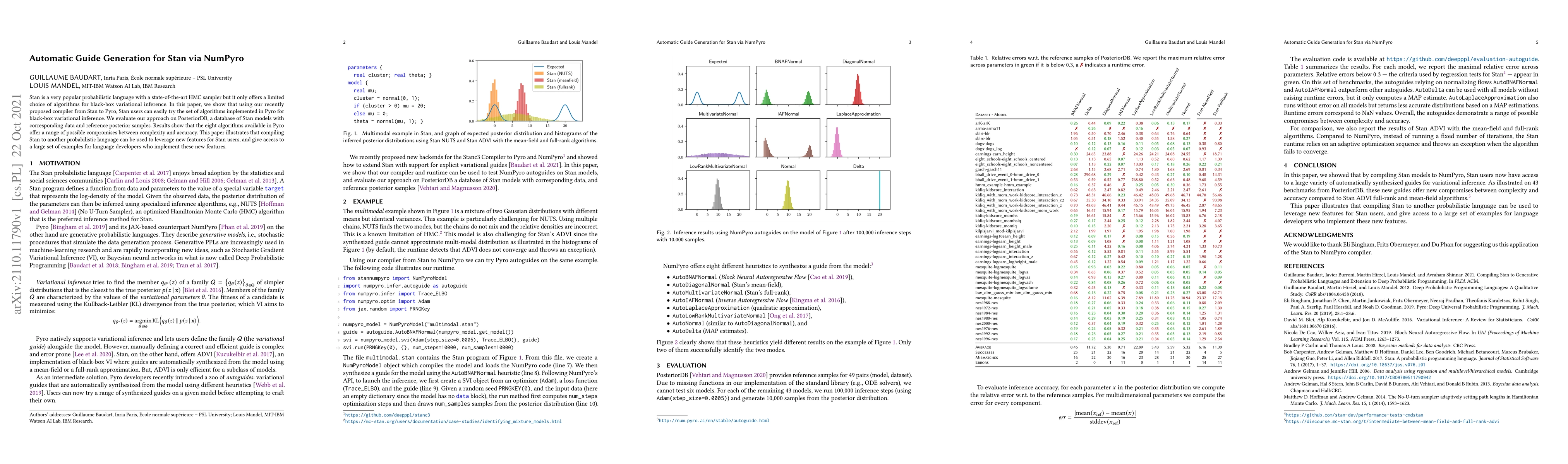 This paper proposes a compiler to translate Stan models to NumPyro, enabling Stan users to utilize Pyro's advanced variational inference algorithms. Evaluations on PosteriorDB demonstrate that Pyro's algorithms provide diverse trade-offs between complexity and accuracy, enhancing Stan's existing capabilities.