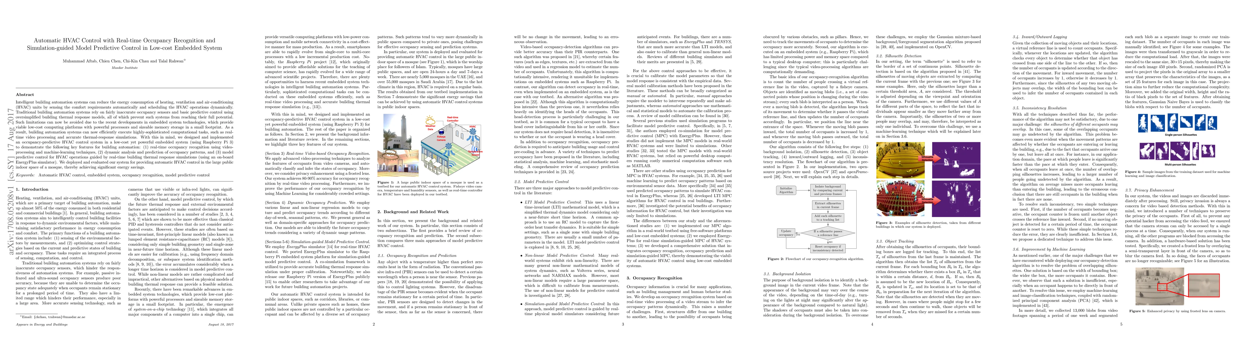 This paper presents an advanced HVAC control system utilizing real-time occupancy recognition and simulation-guided model predictive control in a low-cost embedded system. The system employs video processing and machine learning for occupancy detection, dynamic occupancy pattern prediction, and energy-efficient HVAC operation guided by thermal response simulations, achieving notable energy savings in a mosque.