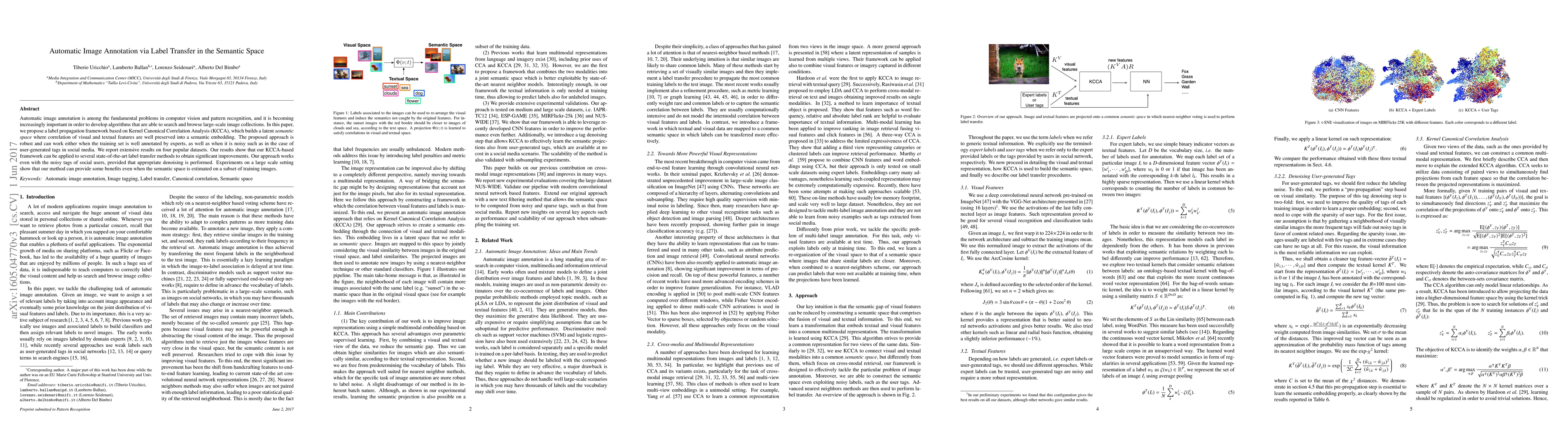 Automatic image annotation is among the fundamental problems in computer vision and pattern recognition, and it is becoming increasingly important in order to develop algorithms that are able to search and browse large-scale image collections. In this paper, we propose a label propagation framework based on Kernel Canonical Correlation Analysis (KCCA), which builds a latent semantic space where correlation of visual and textual features are well preserved into a semantic embedding. The proposed approach is robust and can work either when the training set is well annotated by experts, as well as when it is noisy such as in the case of user-generated tags in social media. We report extensive results on four popular datasets. Our results show that our KCCA-based framework can be applied to several state-of-the-art label transfer methods to obtain significant improvements. Our approach works even with the noisy tags of social users, provided that appropriate denoising is performed. Experiments on a large scale setting show that our method can provide some benefits even when the semantic space is estimated on a subset of training images.