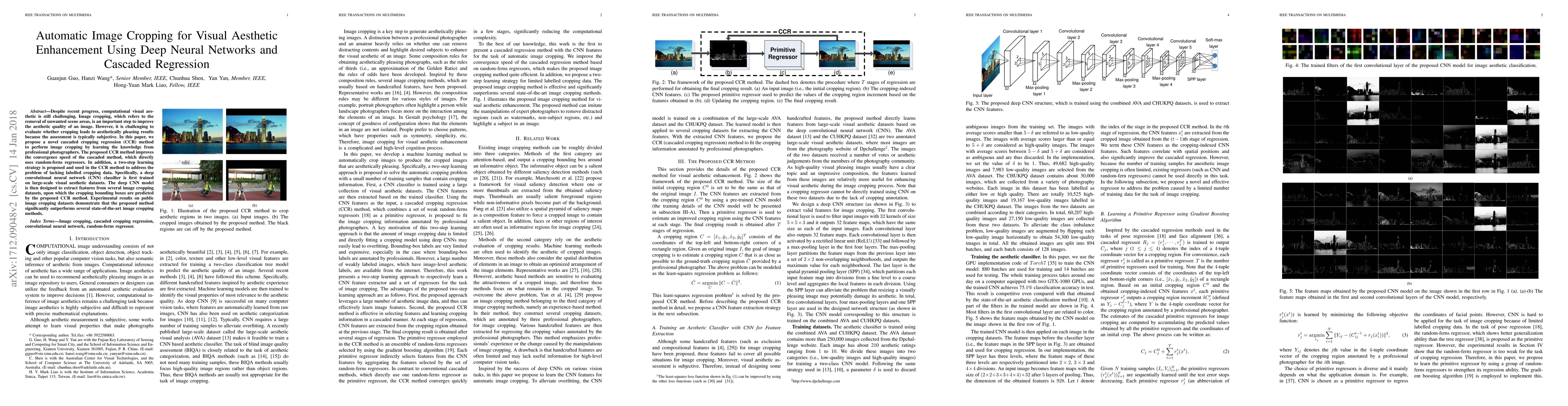 This paper proposes a novel cascaded cropping regression (CCR) method using deep neural networks to enhance image aesthetic quality by cropping. The CCR method, combined with a two-step learning strategy, outperforms existing methods on public datasets.