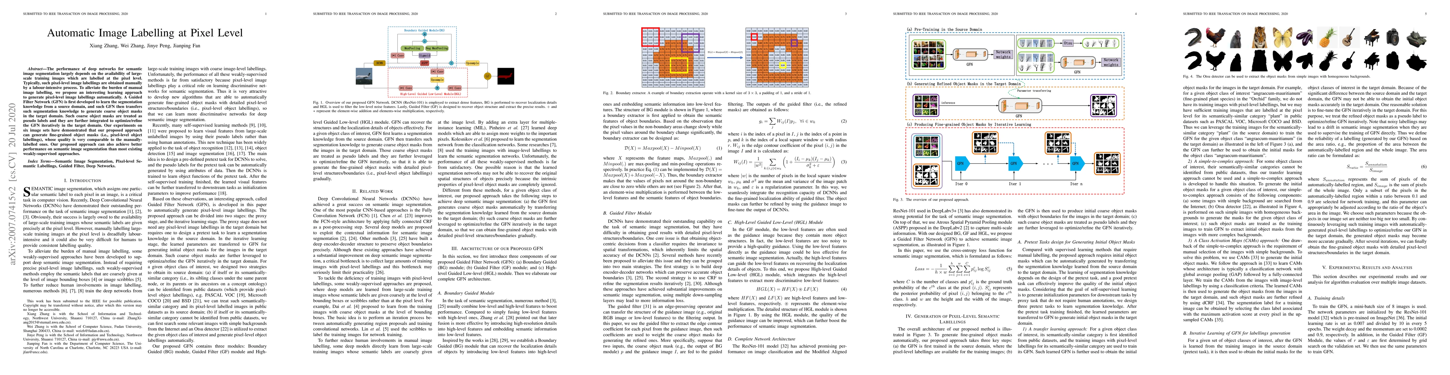 This paper proposes an automatic method using a Guided Filter Network (GFN) to generate pixel-level image labellings without manual intervention, leveraging segmentation knowledge transfer from a source domain to iteratively refine coarse object masks in a target domain, achieving results comparable to manually labelled images.