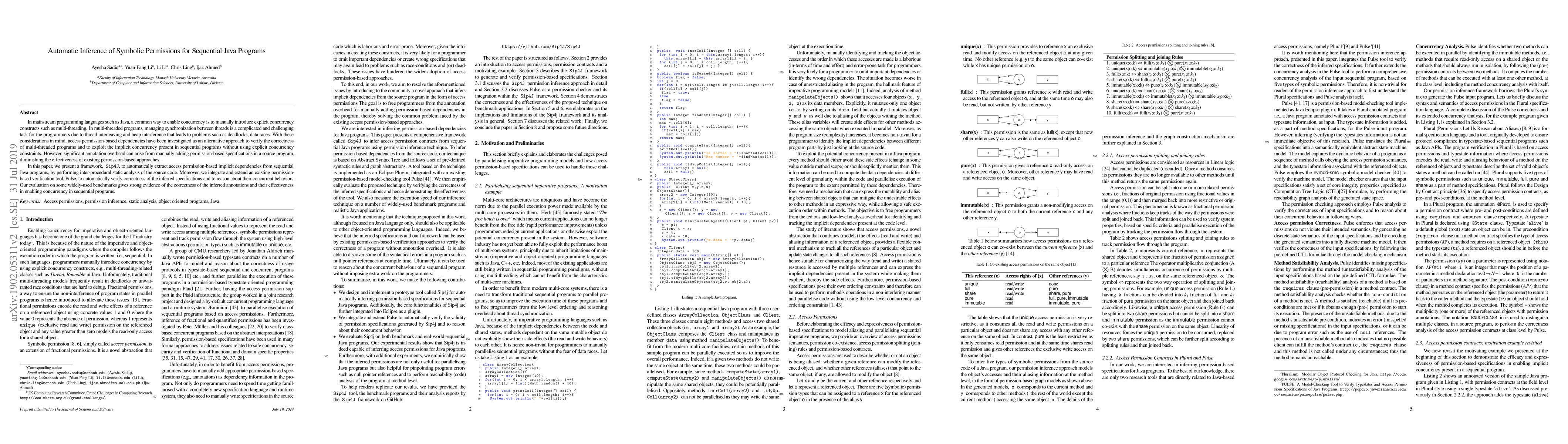 In mainstream programming languages such as Java, a common way to enable concurrency is to manually introduce explicit concurrency constructs such as multi-threading. In multi-threaded programs, managing synchronization between threads is a complicated and challenging task for the programmers due to thread interleaving and heap interference that leads to problems such as deadlocks, data races. With these considerations in mind, access permission-based dependencies have been investigated as an alternative approach to verify the correctness of multi-threaded programs and to exploit the implicit concurrency present in sequential programs without using explicit concurrency constraints. However, significant annotation overhead can arise from manually adding permission-based specifications in a source program, diminishing the effectiveness of existing permission-based approaches. In this paper,we present a framework, Sip4J, to automatically extract access permission-based implicit dependencies from sequential Java programs, by performing inter-procedural static analysis of the source code. Moreover, we integrate and extend an existing permission-based verification tool, Pulse, to automatically verify correctness of the inferred specifications and to reason about their concurrent behaviors. Our evaluation on some widely-used benchmarks gives strong evidence of the correctness of the inferred annotations and their effectiveness in enabling concurrency in sequential programs.