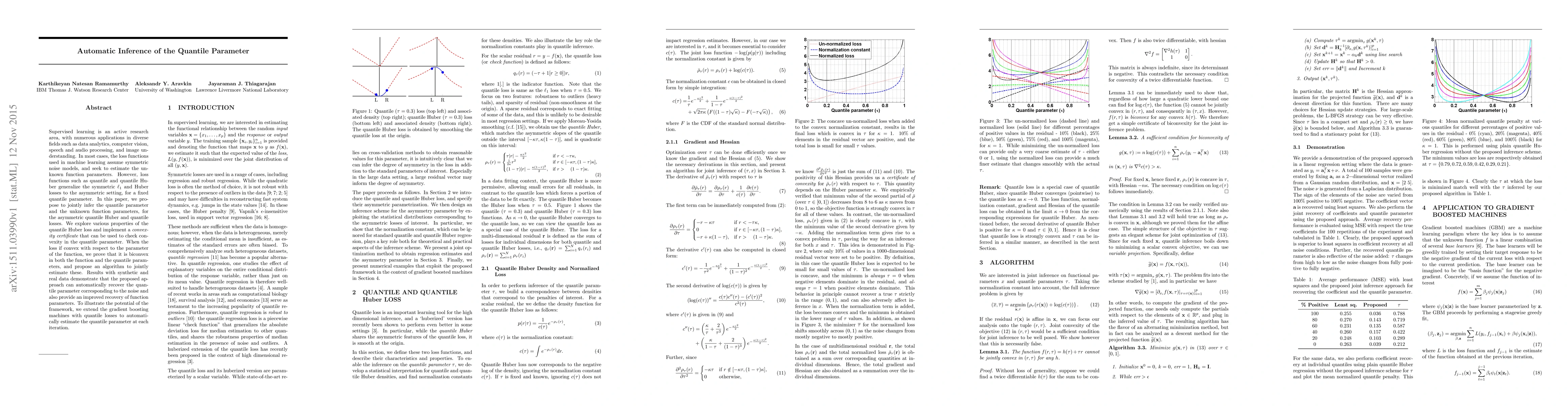 Supervised learning is an active research area, with numerous applications in diverse fields such as data analytics, computer vision, speech and audio processing, and image understanding. In most cases, the loss functions used in machine learning assume symmetric noise models, and seek to estimate the unknown function parameters. However, loss functions such as quantile and quantile Huber generalize the symmetric $\ell_1$ and Huber losses to the asymmetric setting, for a fixed quantile parameter. In this paper, we propose to jointly infer the quantile parameter and the unknown function parameters, for the asymmetric quantile Huber and quantile losses. We explore various properties of the quantile Huber loss and implement a convexity certificate that can be used to check convexity in the quantile parameter. When the loss if convex with respect to the parameter of the function, we prove that it is biconvex in both the function and the quantile parameters, and propose an algorithm to jointly estimate these. Results with synthetic and real data demonstrate that the proposed approach can automatically recover the quantile parameter corresponding to the noise and also provide an improved recovery of function parameters. To illustrate the potential of the framework, we extend the gradient boosting machines with quantile losses to automatically estimate the quantile parameter at each iteration.