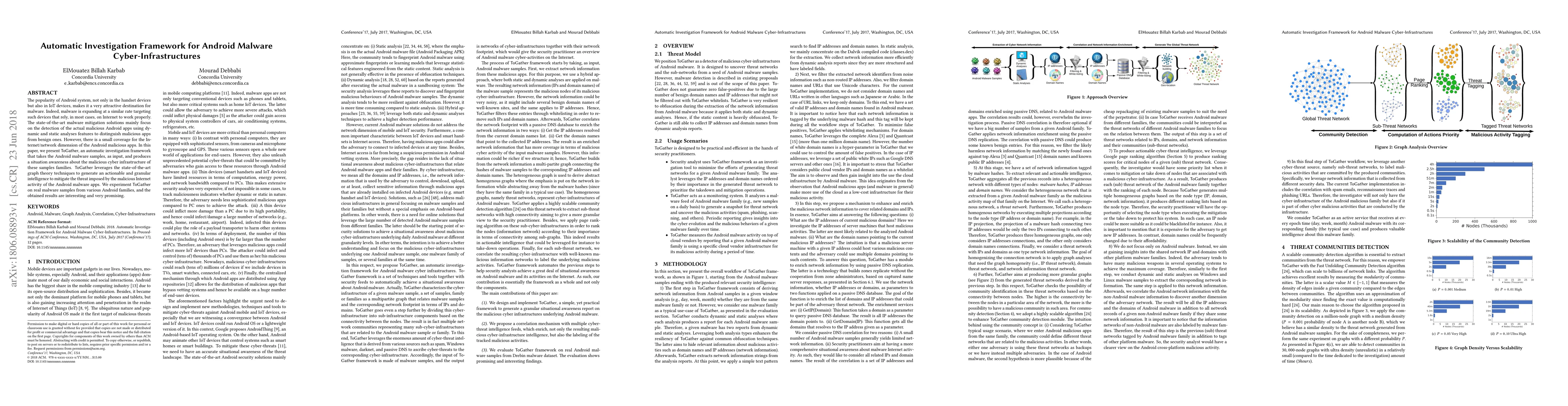 This paper introduces ToGather, an automatic investigation framework for analyzing Android malware, focusing on the network-based cyber infrastructures used by these threats. ToGather employs graph theory to generate detailed intelligence, aiming to enhance the mitigation of Android malware's Internet-related activities, with promising experimental results on real malware samples.