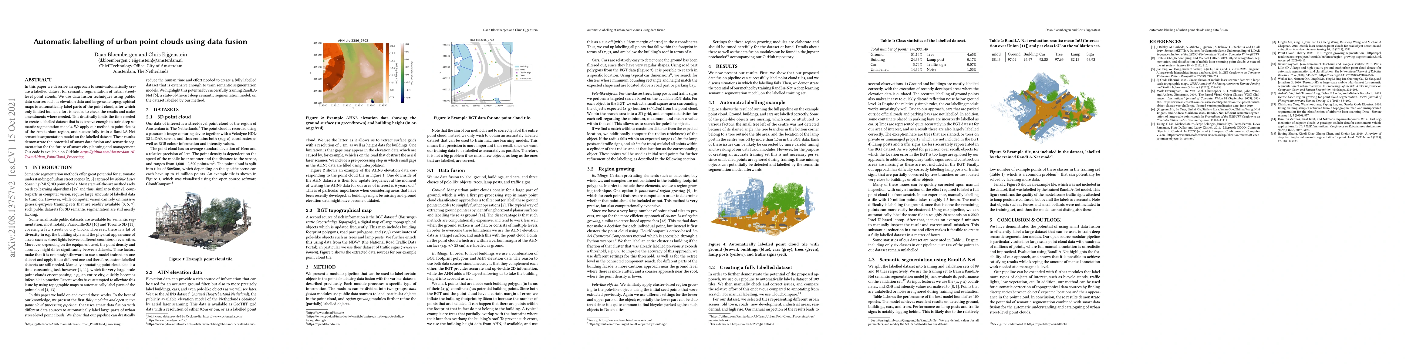 In this paper we describe an approach to semi-automatically create a labelled dataset for semantic segmentation of urban street-level point clouds. We use data fusion techniques using public data sources such as elevation data and large-scale topographical maps to automatically label parts of the point cloud, after which only limited human effort is needed to check the results and make amendments where needed. This drastically limits the time needed to create a labelled dataset that is extensive enough to train deep semantic segmentation models. We apply our method to point clouds of the Amsterdam region, and successfully train a RandLA-Net semantic segmentation model on the labelled dataset. These results demonstrate the potential of smart data fusion and semantic segmentation for the future of smart city planning and management.