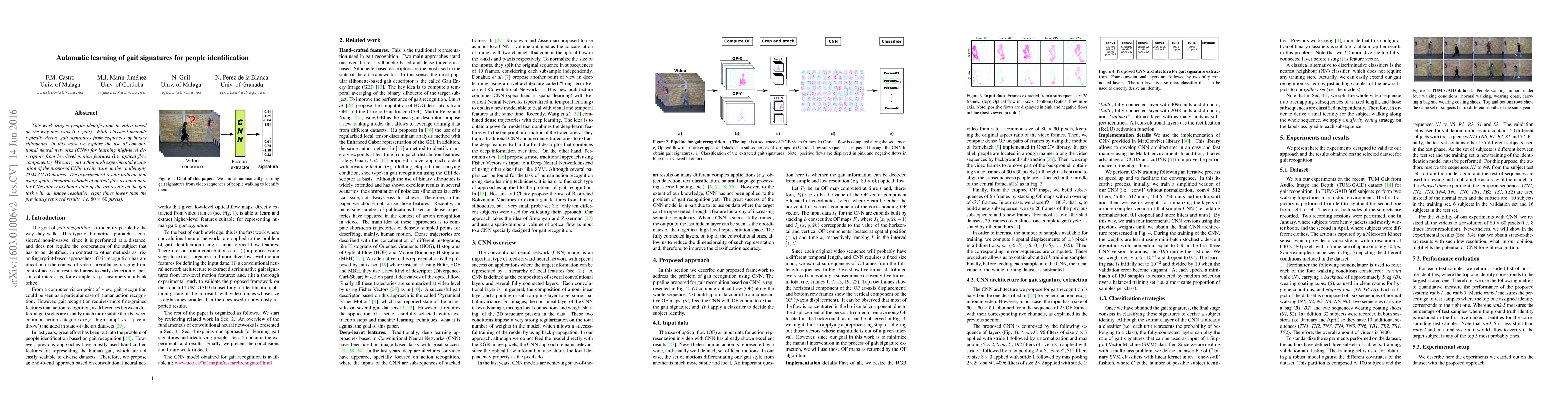Researchers developed a new method using convolutional neural networks to learn gait signatures from low-level motion features, achieving state-of-the-art results on the TUM-GAID dataset with lower image resolution.