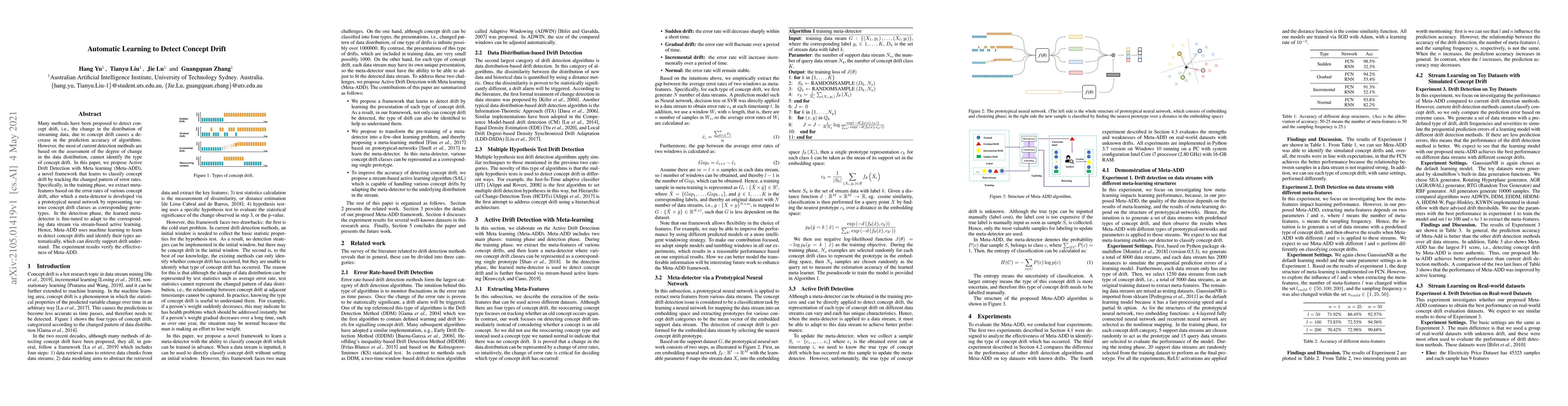 Many methods have been proposed to detect concept drift, i.e., the change in the distribution of streaming data, due to concept drift causes a decrease in the prediction accuracy of algorithms. However, the most of current detection methods are based on the assessment of the degree of change in the data distribution, cannot identify the type of concept drift. In this paper, we propose Active Drift Detection with Meta learning (Meta-ADD), a novel framework that learns to classify concept drift by tracking the changed pattern of error rates. Specifically, in the training phase, we extract meta-features based on the error rates of various concept drift, after which a meta-detector is developed via a prototypical neural network by representing various concept drift classes as corresponding prototypes. In the detection phase, the learned meta-detector is fine-tuned to adapt to the corresponding data stream via stream-based active learning. Hence, Meta-ADD uses machine learning to learn to detect concept drifts and identify their types automatically, which can directly support drift understand. The experiment results verify the effectiveness of Meta-ADD.