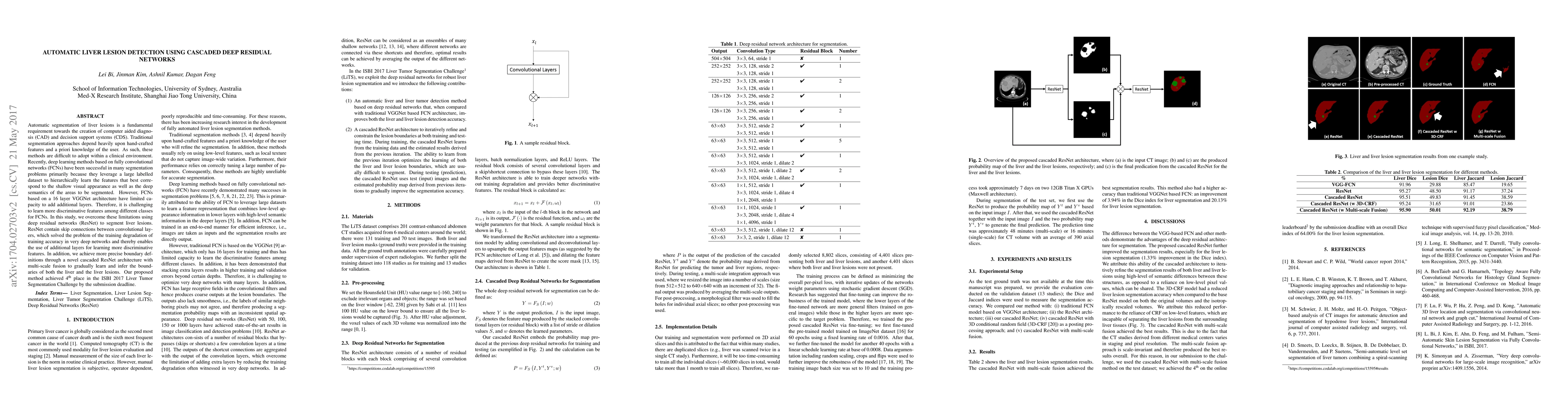 This paper proposes a cascaded deep residual network (ResNet) for automatic liver lesion detection, overcoming the limitations of traditional fully convolutional networks (FCNs) by using skip connections to enhance feature learning. The method achieves precise boundary definitions through a multi-scale fusion approach, securing 4th place in the ISBI 2017 Liver Tumor Segmentation Challenge.