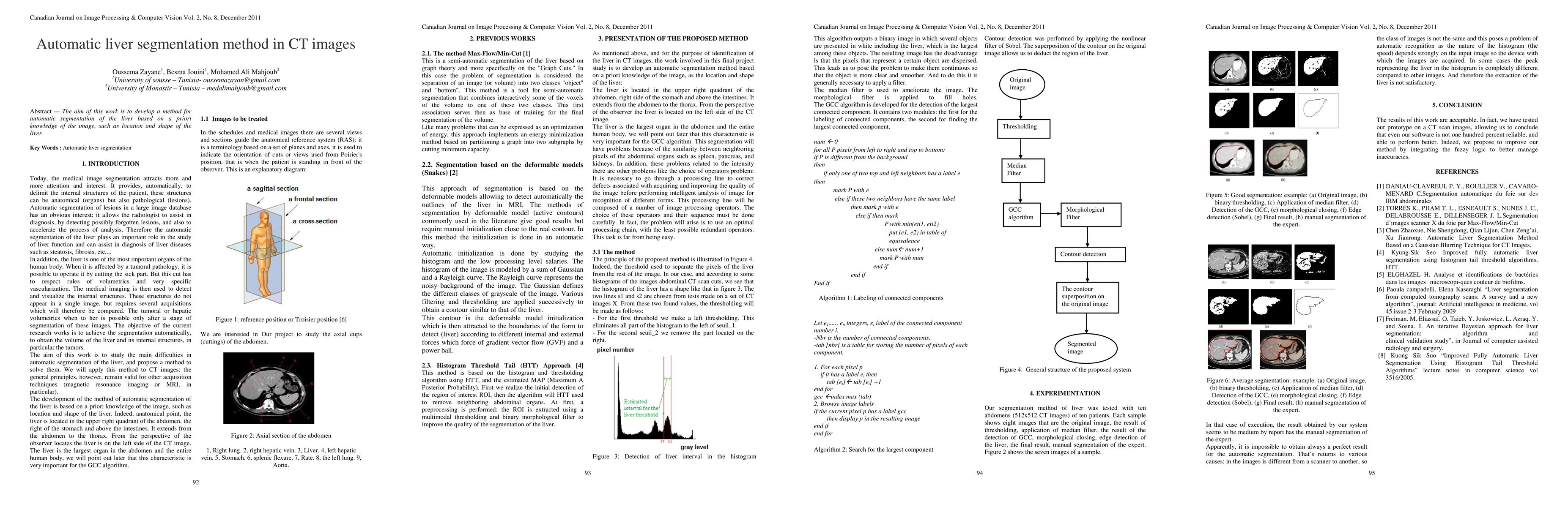 Summary: This paper proposes an automatic liver segmentation method for CT images using a priori knowledge about the liver's location and shape. The method aims to efficiently and accurately delineate the liver region in medical imaging data.