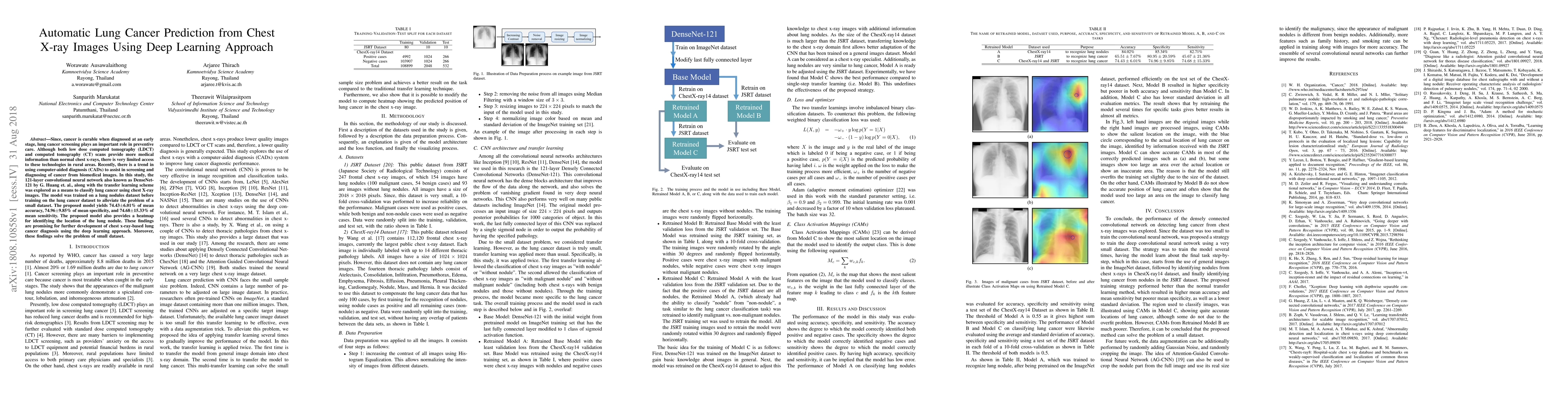 This study explores a 121-layer DenseNet-121 convolutional neural network with transfer learning for automatic lung cancer prediction from chest X-ray images, achieving 74.43% mean accuracy. The model addresses the issue of limited datasets by initial training on lung nodules, providing promising results for rural areas with limited access to advanced imaging technologies.