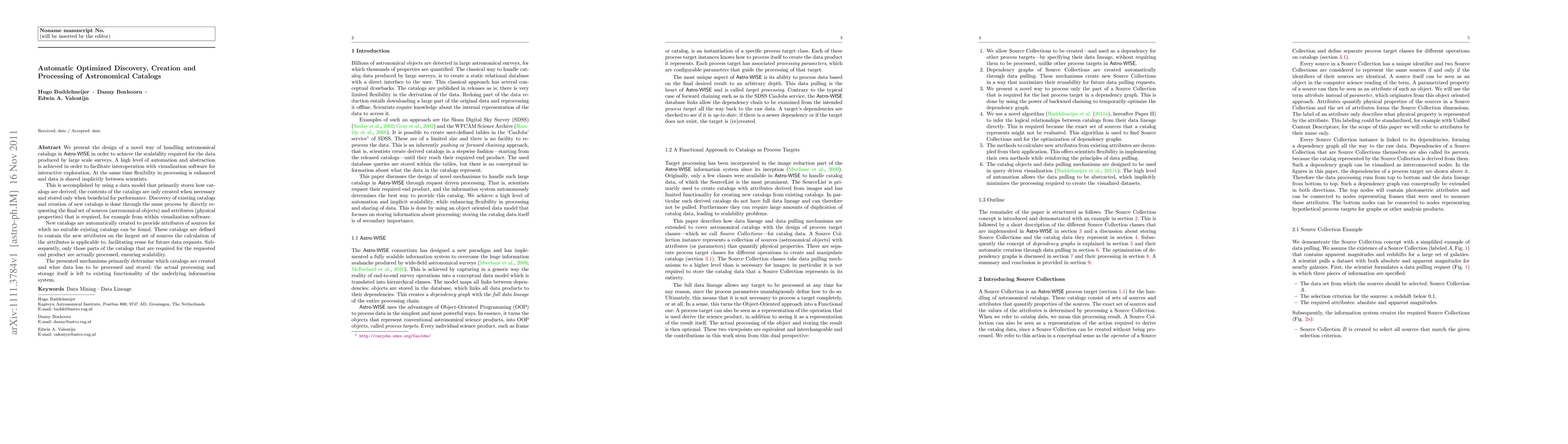 This paper introduces a novel automated system for managing astronomical catalogs in Astro-WISE, enabling scalability for large survey data. It emphasizes flexibility, data sharing, and efficient processing through a data model that derives catalogs on-demand and reuses existing data when possible.