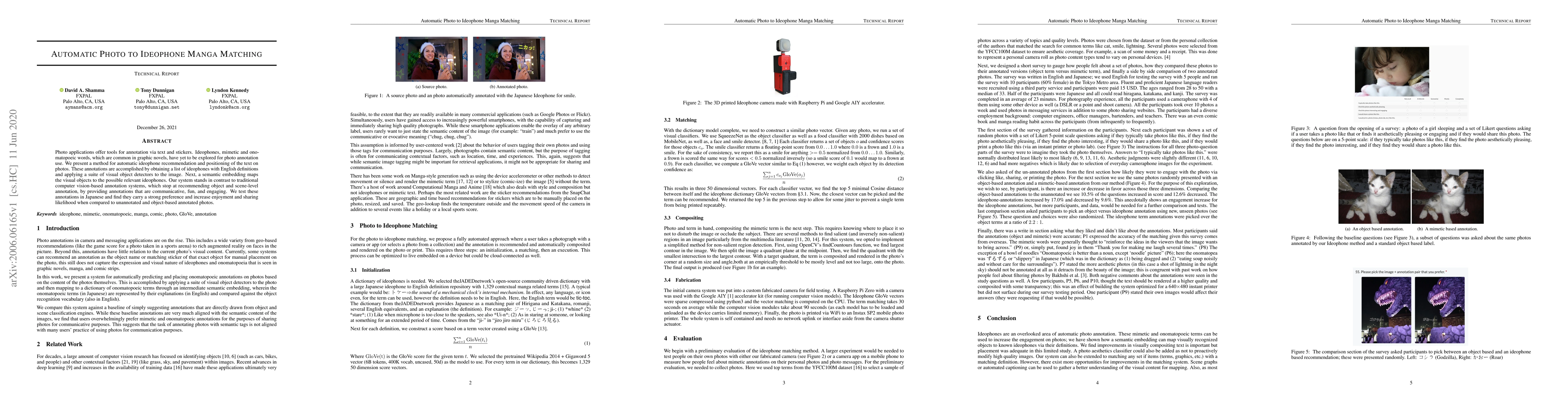 Photo applications offer tools for annotation via text and stickers. Ideophones, mimetic and onomatopoeic words, which are common in graphic novels, have yet to be explored for photo annotation use. We present a method for automatic ideophone recommendation and positioning of the text on photos. These annotations are accomplished by obtaining a list of ideophones with English definitions and applying a suite of visual object detectors to the image. Next, a semantic embedding maps the visual objects to the possible relevant ideophones. Our system stands in contrast to traditional computer vision-based annotation systems, which stop at recommending object and scene-level annotation, by providing annotations that are communicative, fun, and engaging. We test these annotations in Japanese and find they carry a strong preference and increase enjoyment and sharing likelihood when compared to unannotated and object-based annotated photos.