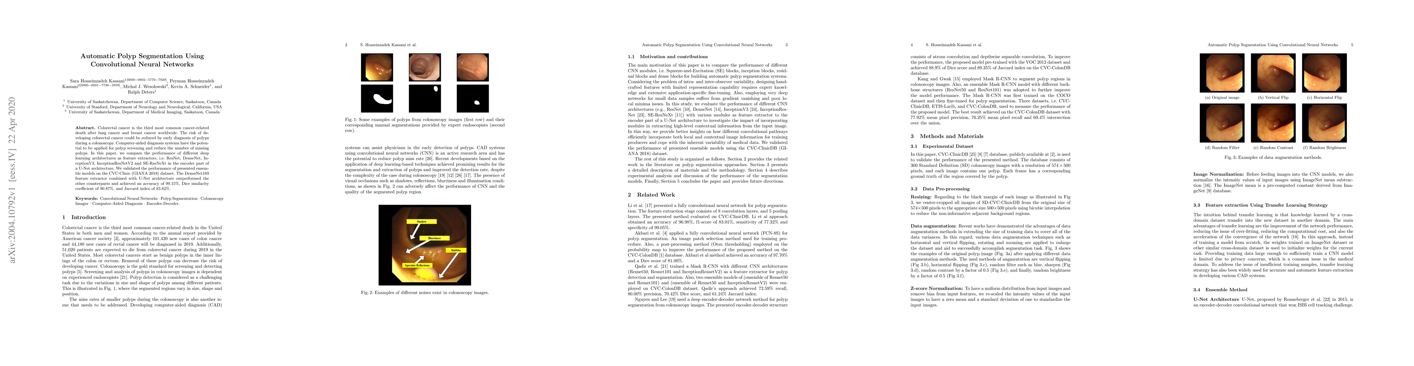 This research paper presents a deep learning approach to automatically segment polyps in colonoscopy images using a U-Net architecture with different feature extractors. The DenseNet169 feature extractor achieved the highest accuracy of 99.15% on the CVC-Clinic dataset.