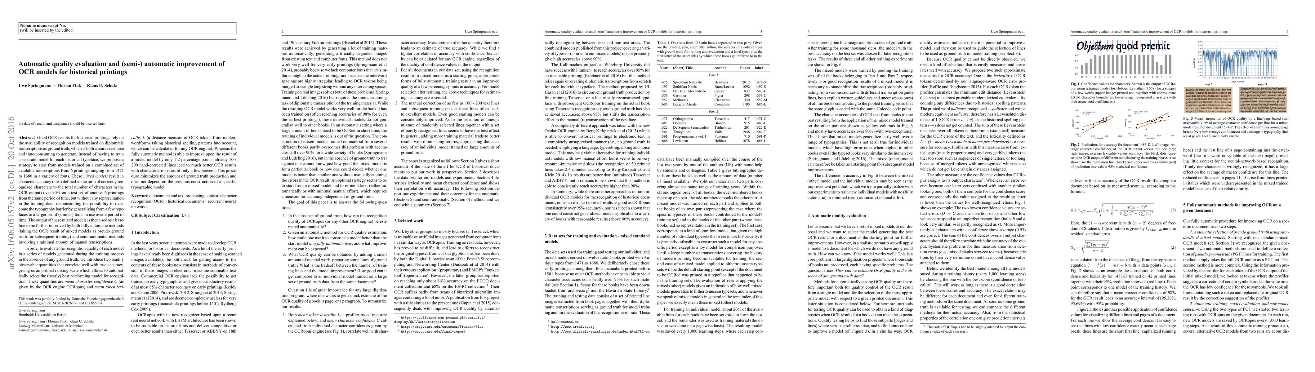 Good OCR results for historical printings rely on the availability of recognition models trained on diplomatic transcriptions as ground truth, which is both a scarce resource and time-consuming to generate. Instead of having to train a separate model for each historical typeface, we propose a strategy to start from models trained on a combined set of available transcriptions in a variety of fonts. These \emph{mixed models} result in character accuracy rates over 90\% on a test set of printings from the same period of time, but without any representation in the training data, demonstrating the possibility to overcome the typography barrier by generalizing from a few typefaces to a larger set of (similar) fonts in use over a period of time. The output of these mixed models is then used as a baseline to be further improved by both fully automatic methods and semi-automatic methods involving a minimal amount of manual transcriptions. In order to evaluate the recognition quality of each model in a series of models generated during the training process in the absence of any ground truth, we introduce two readily observable quantities that correlate well with true accuracy. These quantities are \emph{mean character confidence C} (as given by the OCR engine OCRopus) and \emph{mean token lexicality L} (a distance measure of OCR tokens from modern wordforms taking historical spelling patterns into account, which can be calculated for any OCR engine). Whereas the fully automatic method is able to improve upon the result of a mixed model by only 1-2 percentage points, already 100-200 hand-corrected lines lead to much better OCR results with character error rates of only a few percent. This procedure minimizes the amount of ground truth production and does not depend on the previous construction of a specific typographic model.