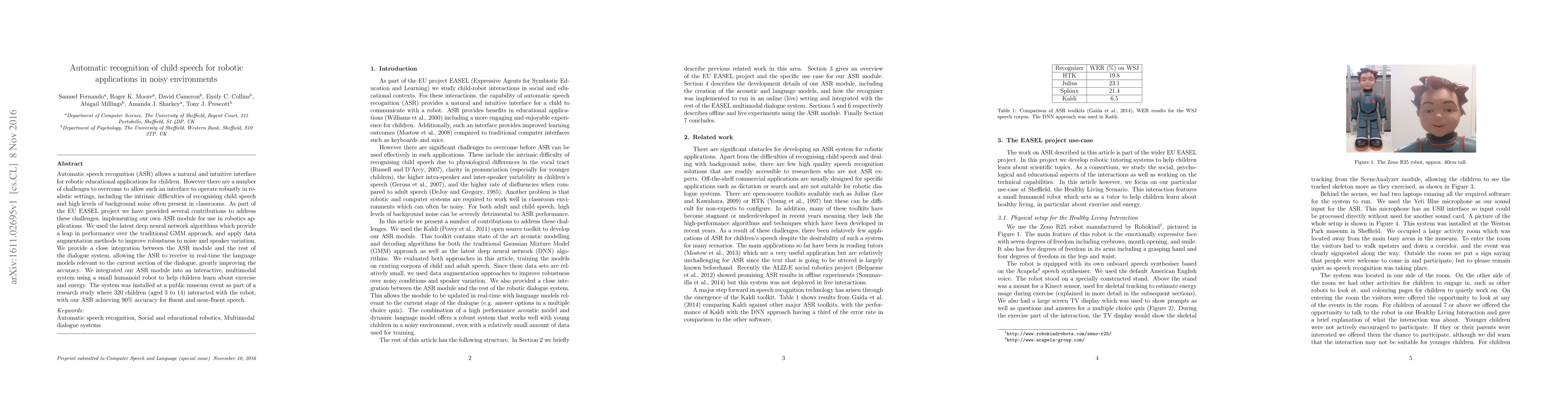 Researchers developed an automatic speech recognition system for robotic applications to help children learn in noisy environments, achieving 90% accuracy with real-time language models integration.